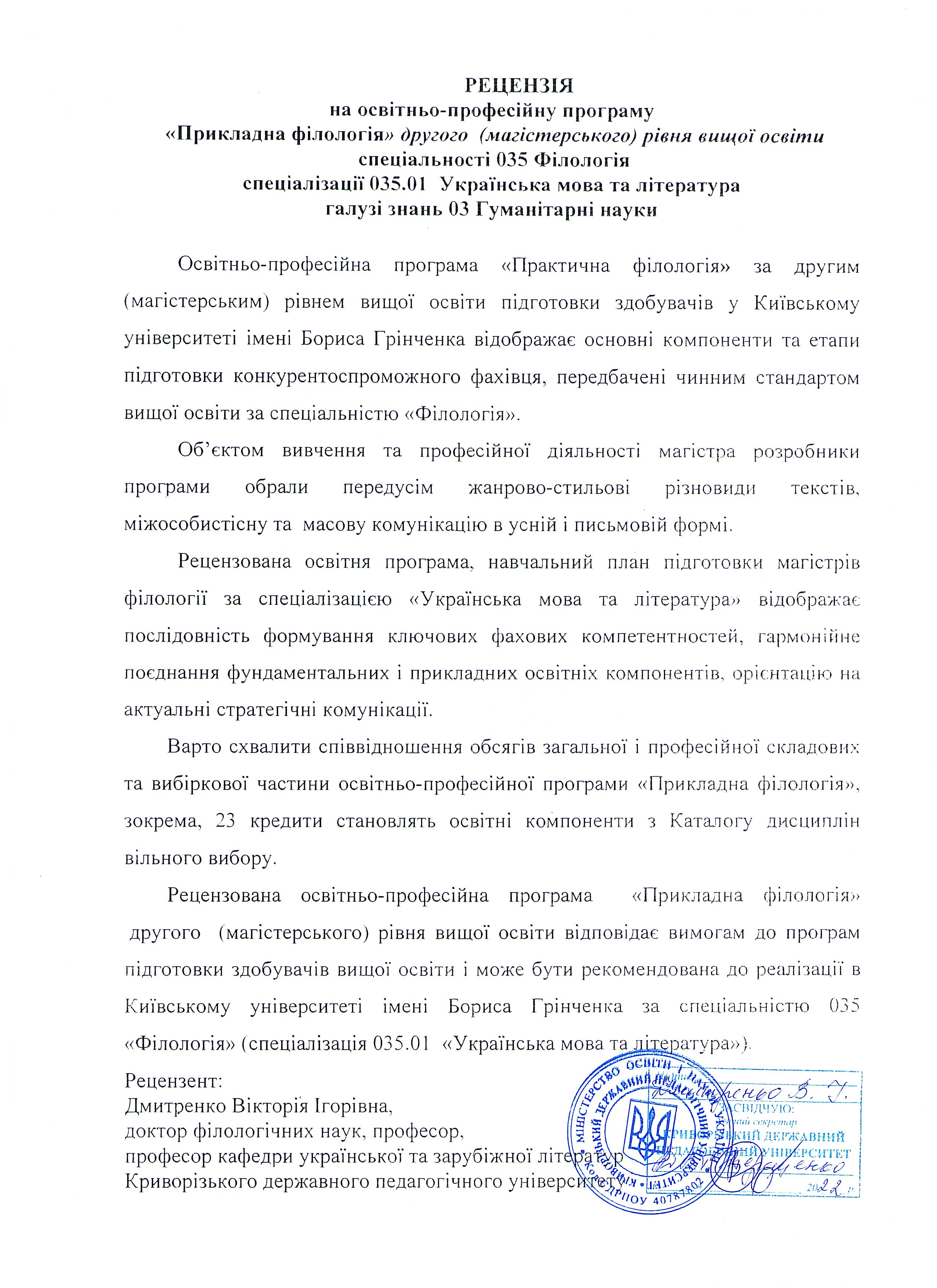 ОСВІТНЬО-ПРОФЕСІЙНА ПРОГРАМА "ПРИКЛАДНА ФІЛОЛОГІЯ" спеціальності 035 "Філологія"