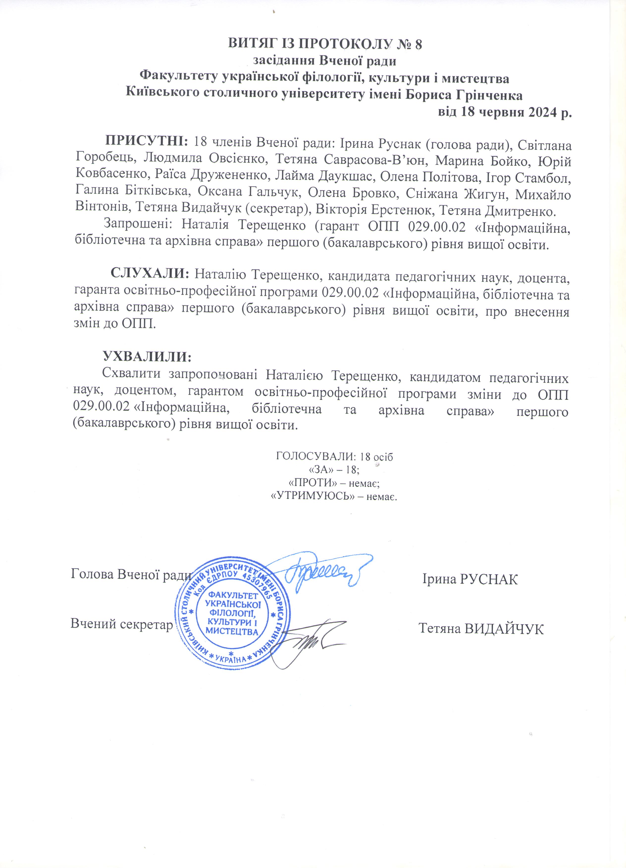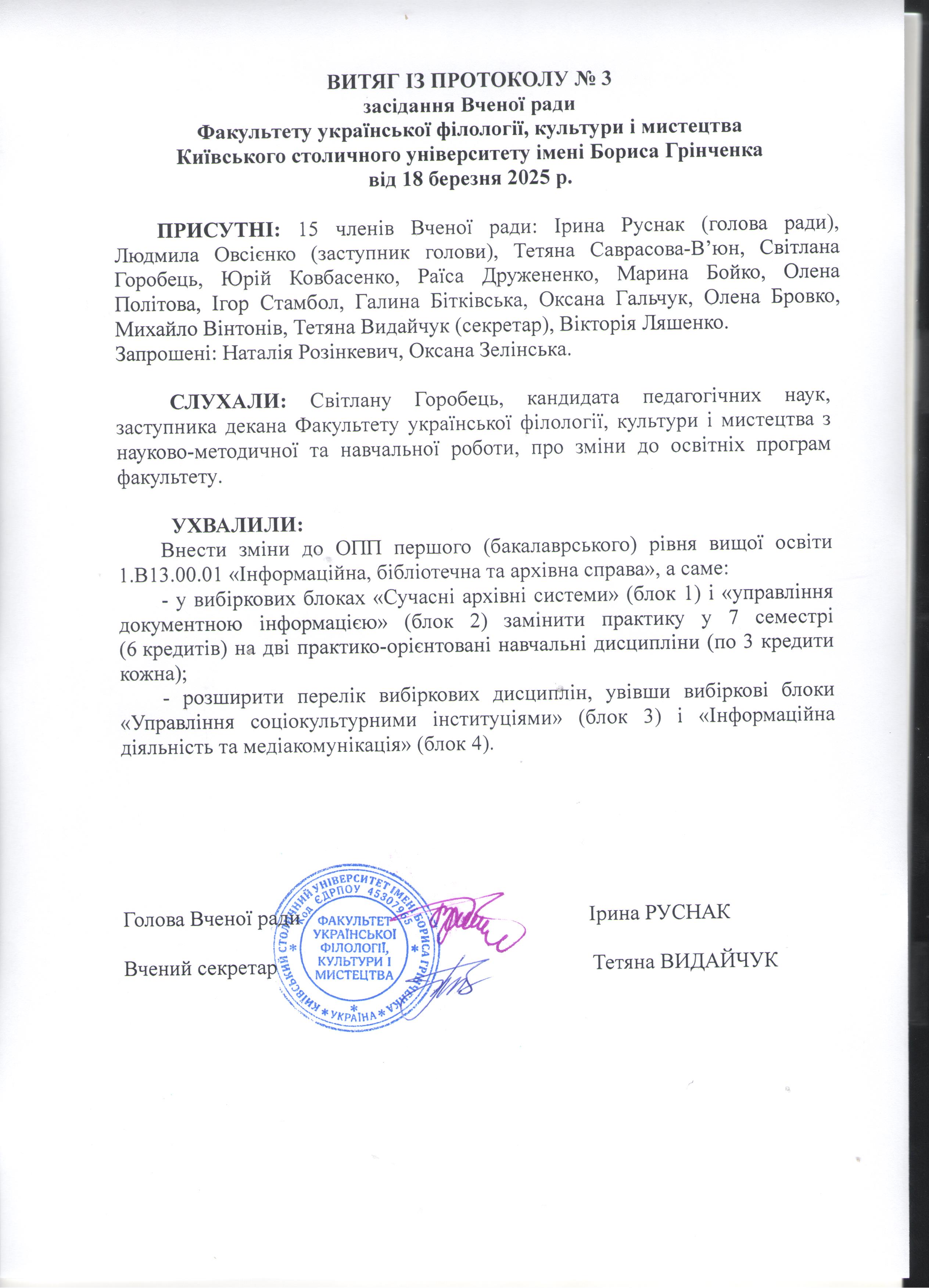 ОСВІТНЬО-ПРОФЕСІЙНА ПРОГРАМА "ІНФОРМАЦІЙНА, БІБЛІОТЕЧНА ТА АРХІВНА СПРАВА" спеціальності 029 "Інформаційна, бібліотечна та архівна права"