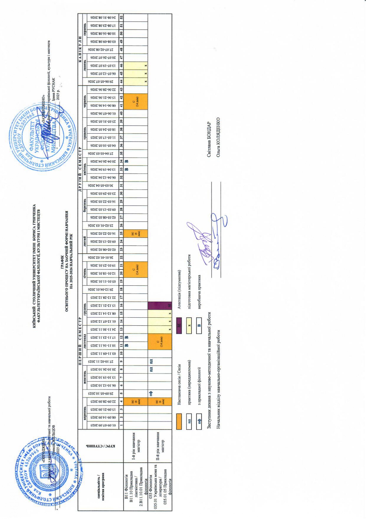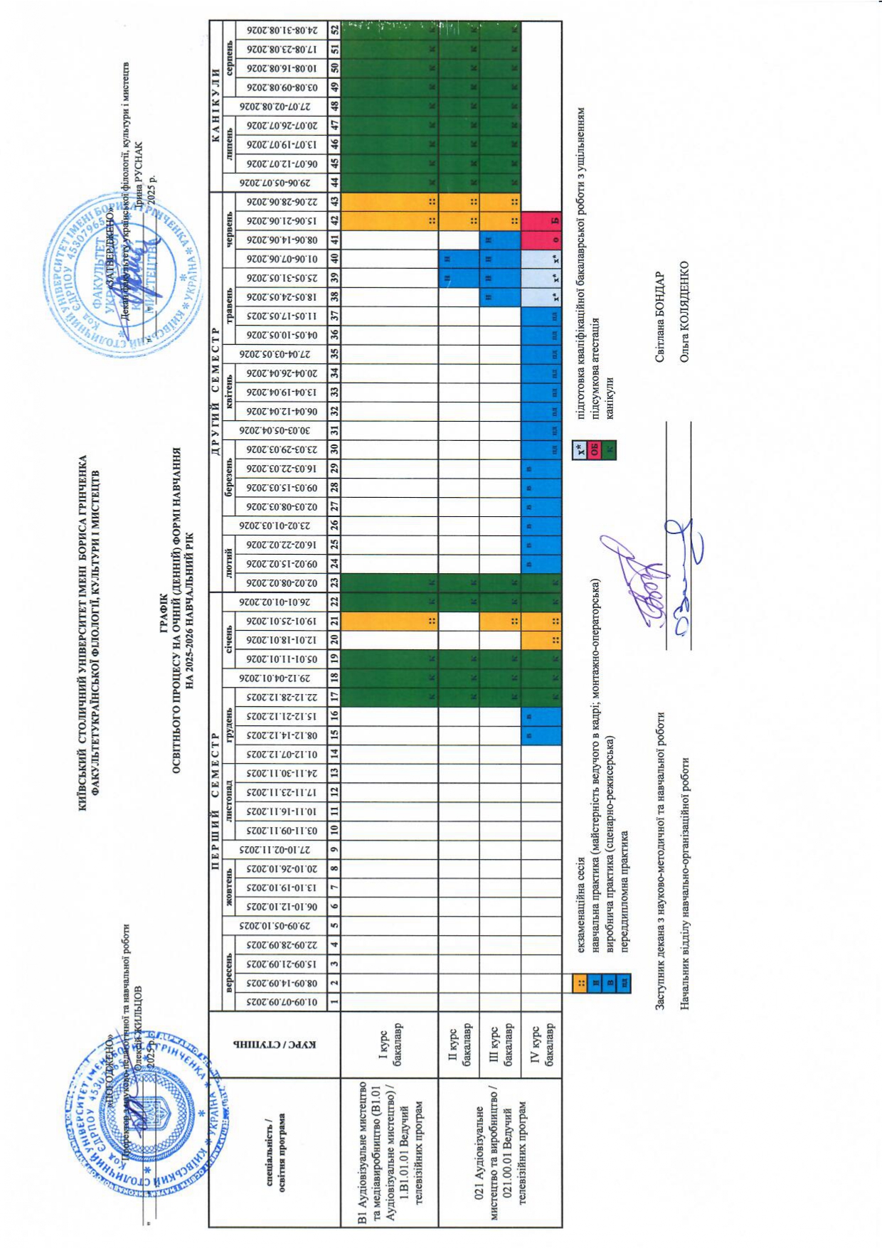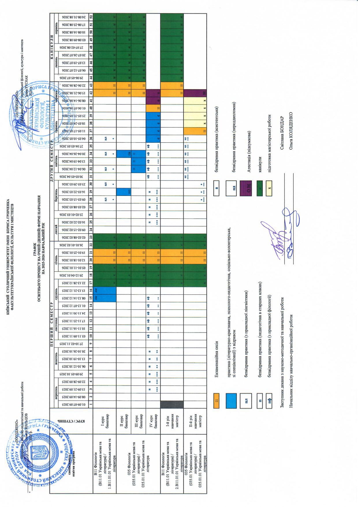 Графіки освітнього процесу на очній (денній) формі навчання
