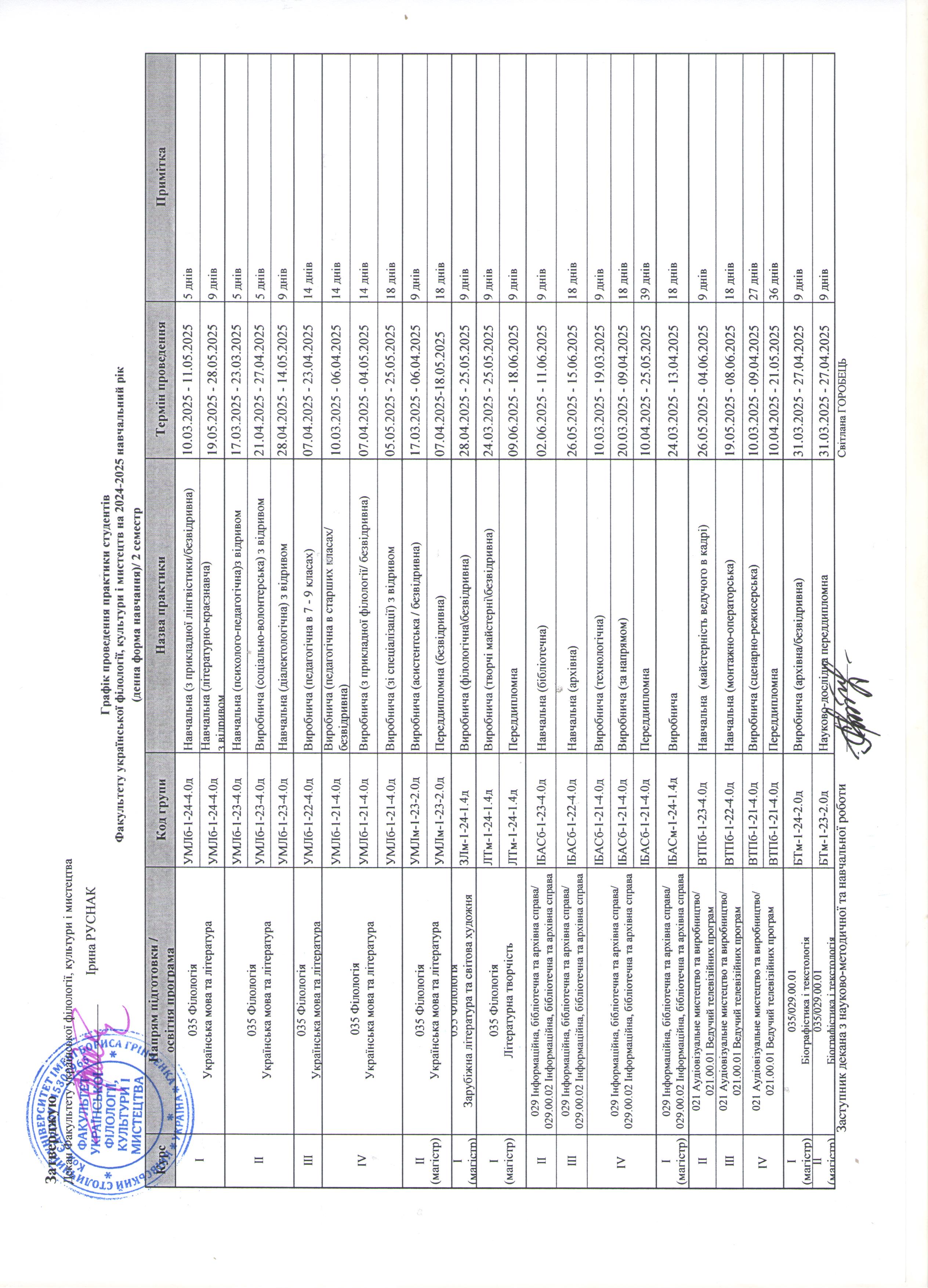 Графік практики на очній (денній) формі навчання