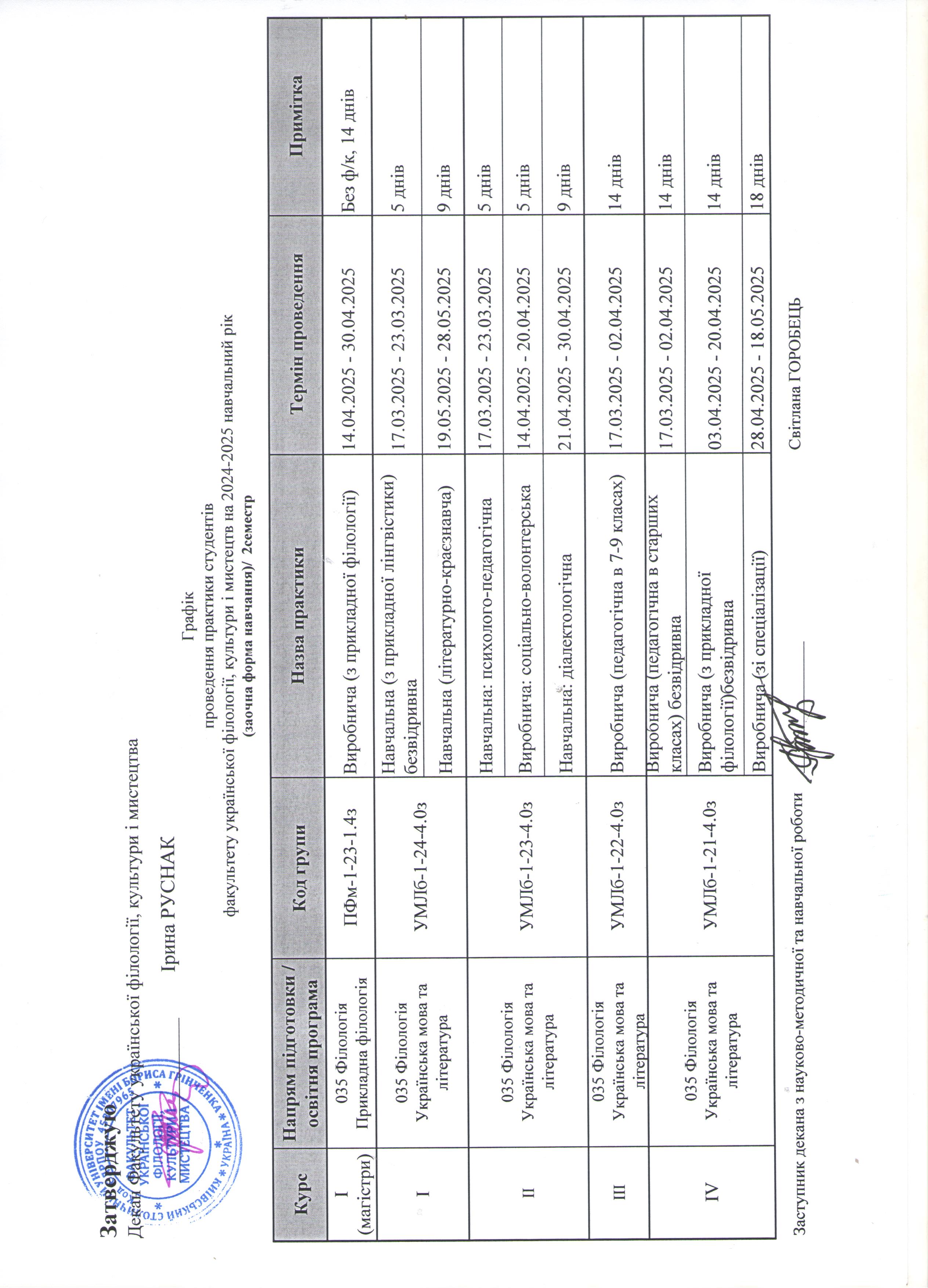 Графік практики на заочній формі навчання