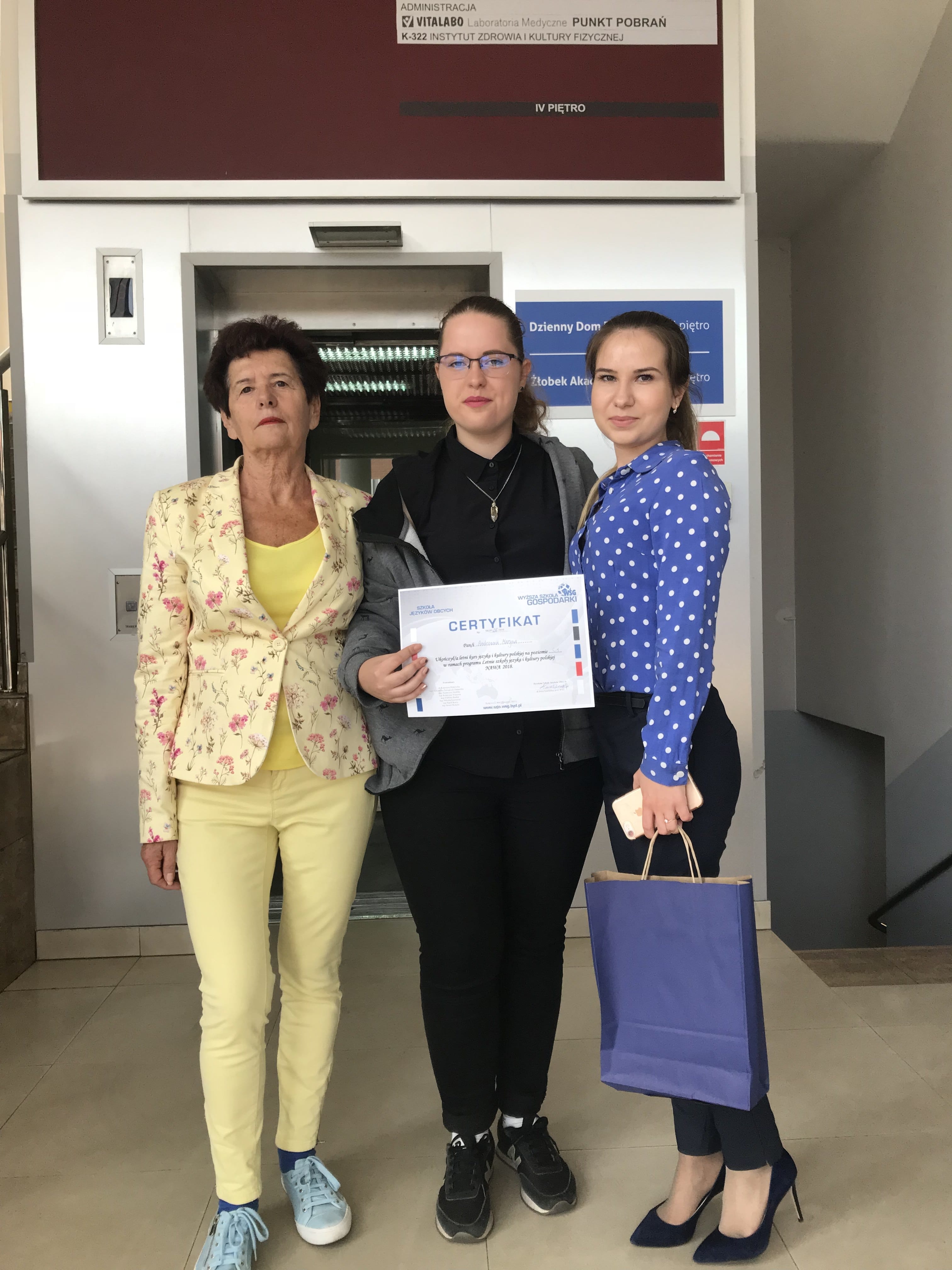 З 01 по 29 серпня 2018 року студентка 4 курсу групи ФАб-1-15-4.0д Інституту філологіїАндронова Марина взяла участь у роботі літньої школи при Університеті економіки в Бидгощі (Куявсько-Поморська провінція). Під час навчання студентка слухала лекції з польської мови, з історії Польщі, відвідала такі міста, як: Гданськ, Гдиня, Сопот, Зубін, Торунь, Гнєзно, Познань та Остромеко. По завершенні літньої школи Андронова Марина отримала сертифікат на знання польської мови рівня С1.