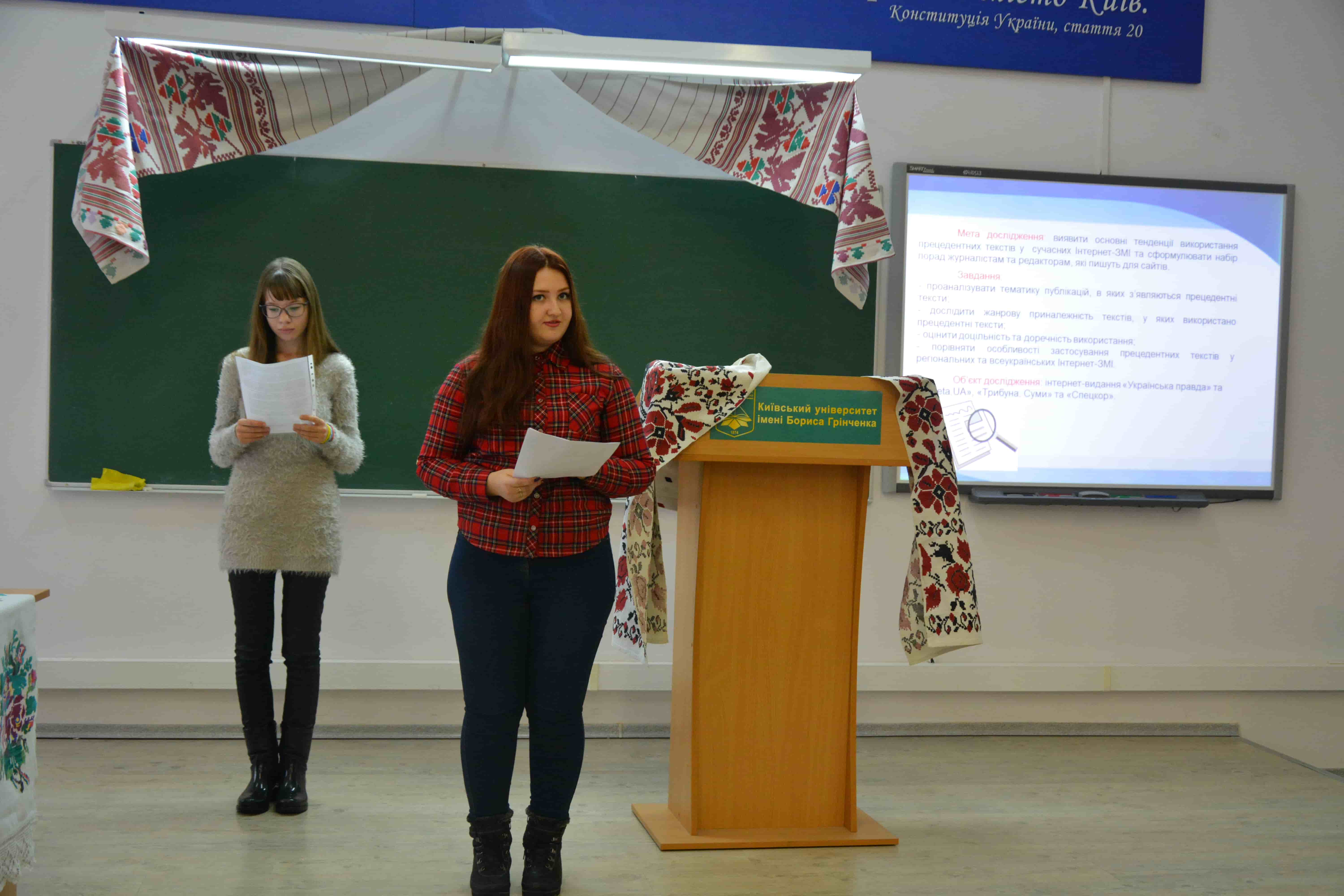 Незмінними модераторами заходу були завідувач НДЛ грінченкознавства, кандидат філологічних наук Оксана Михайлівна Івасюк та заступник директора Інституту філології з наукової роботи, кандидат філологічних наук Олена Леонідівна Доценко.