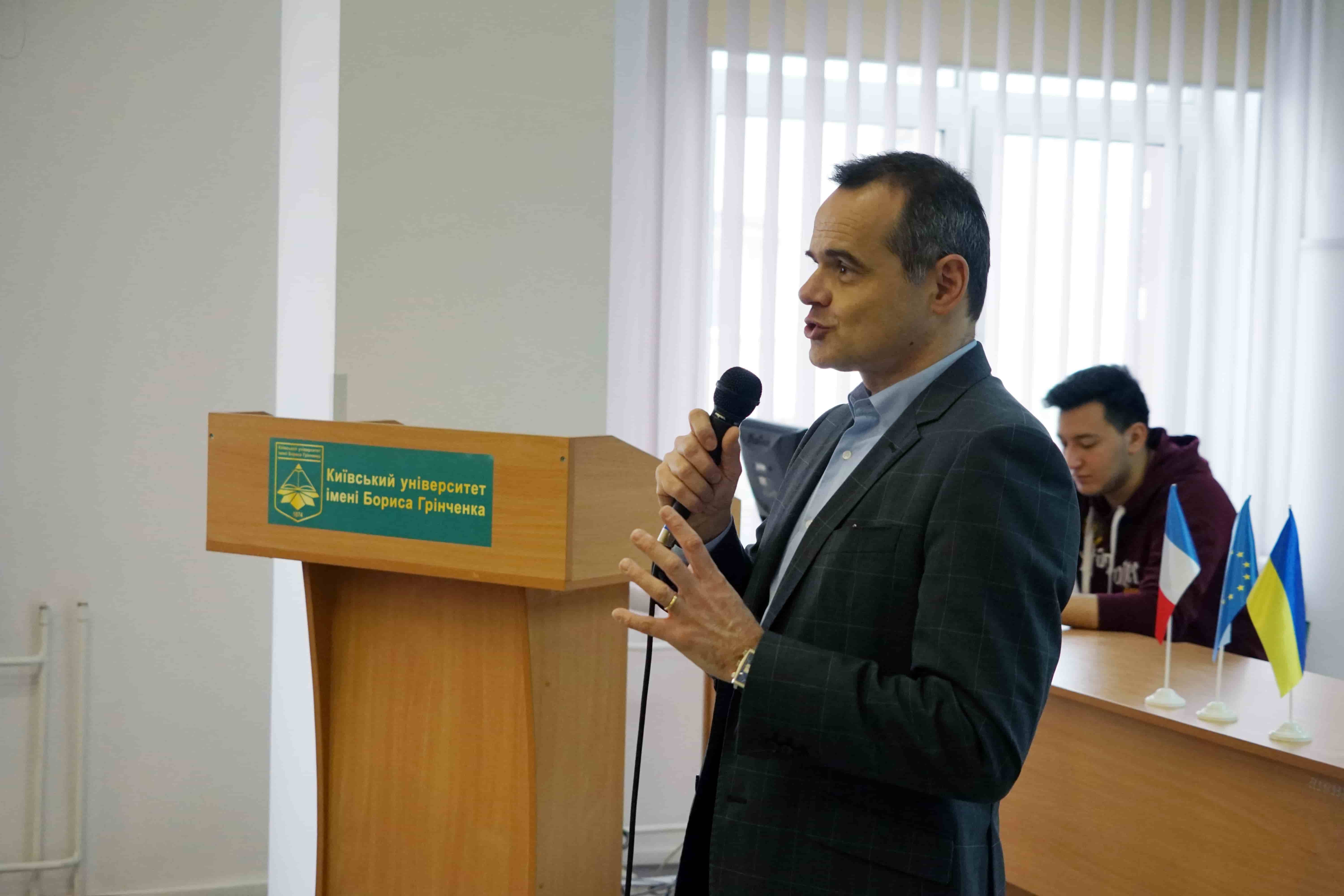 5 березня 2019 року в Інституті філології Київського університету імені Бориса Грінченка відбулася лекція Першого радника Посольства Франції в Україні Крістофа ле Ріголера.