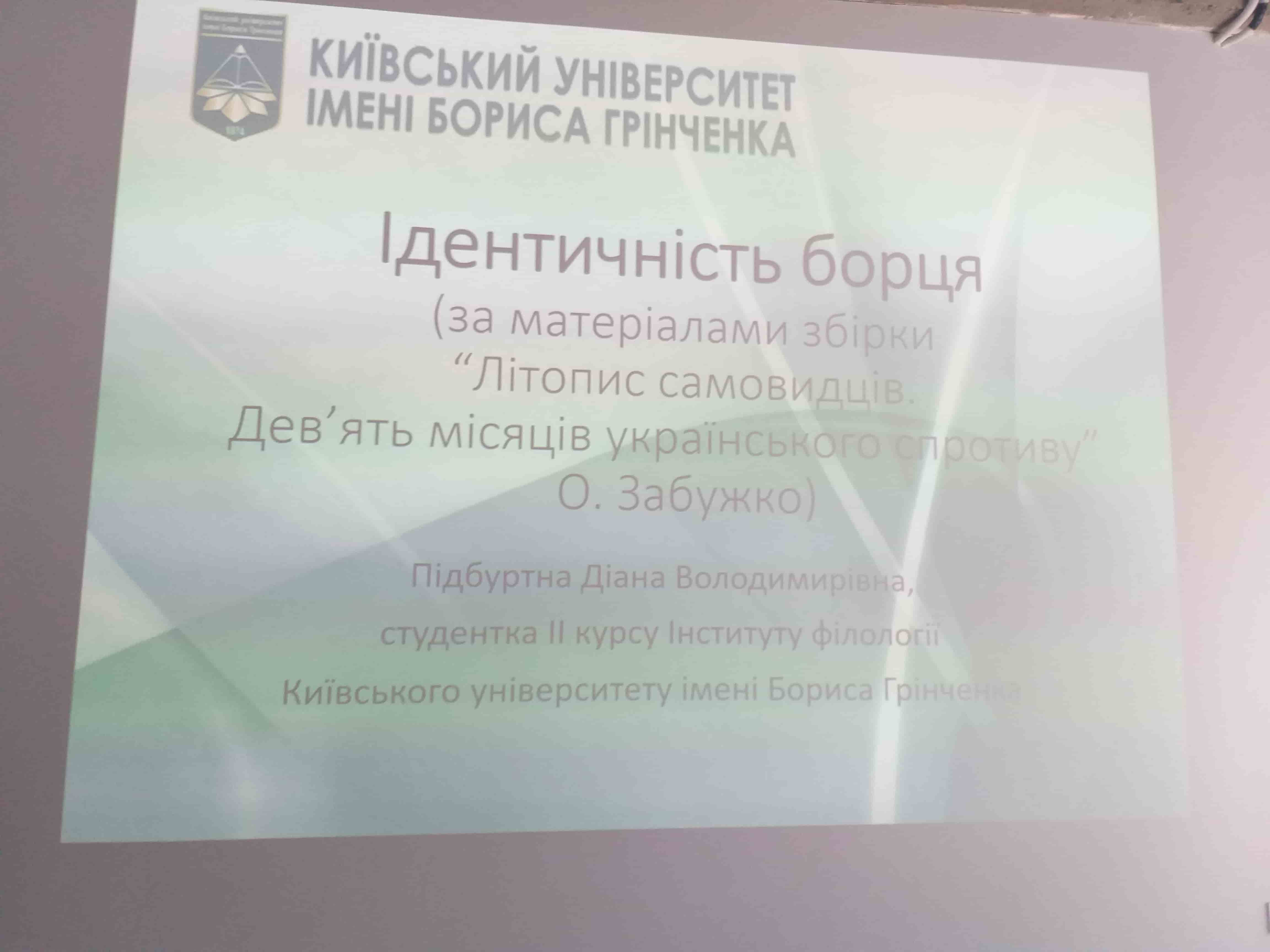 1 листопада 2018 року був оголошений Всеукраїнський конкурс наукових студентських робіт на честь Героя Небесної сотні, політолога, історика Сергія Кемського. Організували конкурс Національний меморіальний комплекс Героїв Небесної Сотні – Музей Революції Гідності та Громадська організація «Родина Небесної Сотні» за сприяння Українського інституту національної пам’яті., Надіслані на конкурс дослідження охоплювала спільна тема Революції Гідності. Загалом зголосилися понад 30 учасників із 20 вишів України. Серед них студентка 2 курсу Інституту філології Діана Підбуртна з роботою «Ідентичність борця за “Літописом Самовидців. Дев’ять місяців українського спротиву” О. Забужко».
