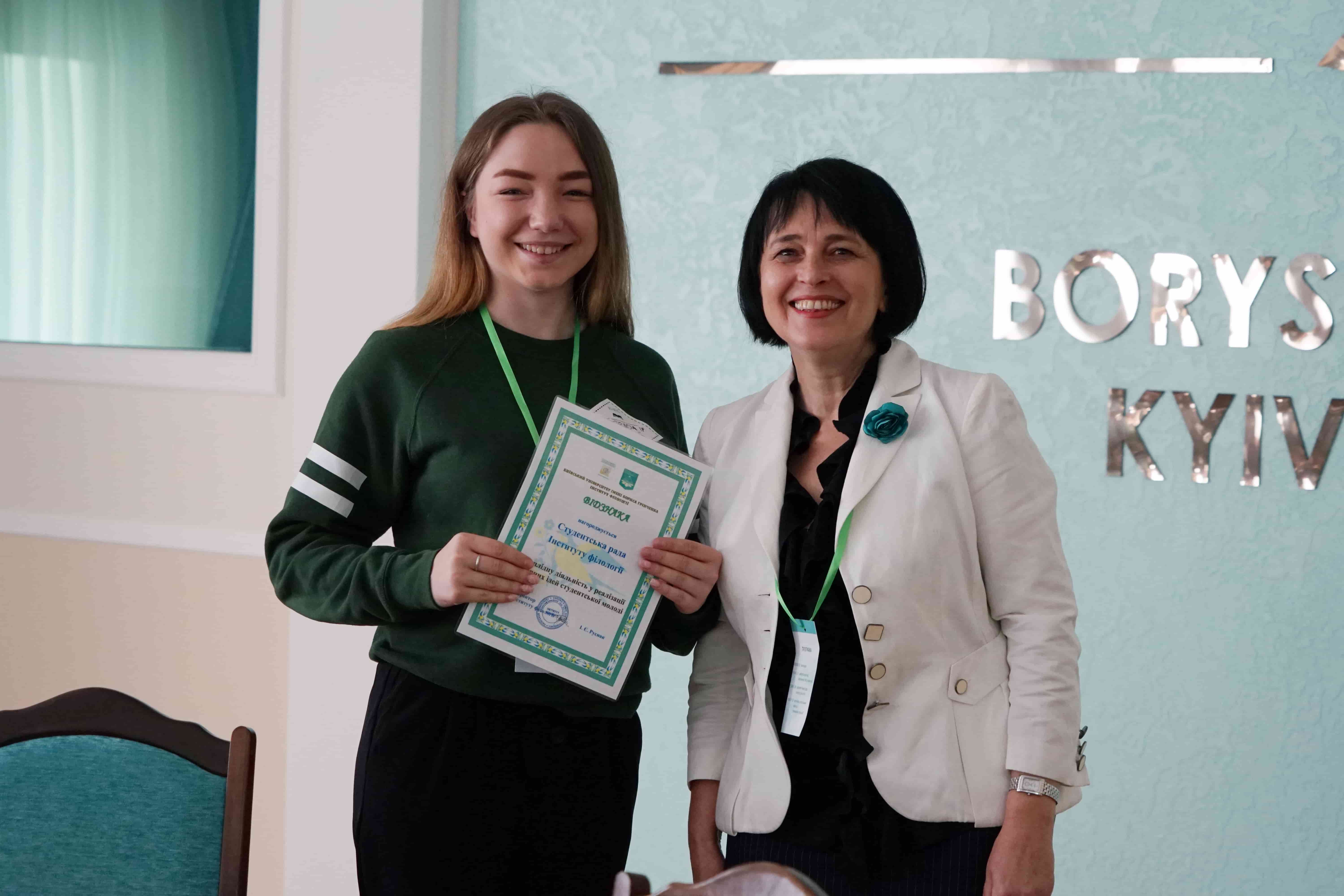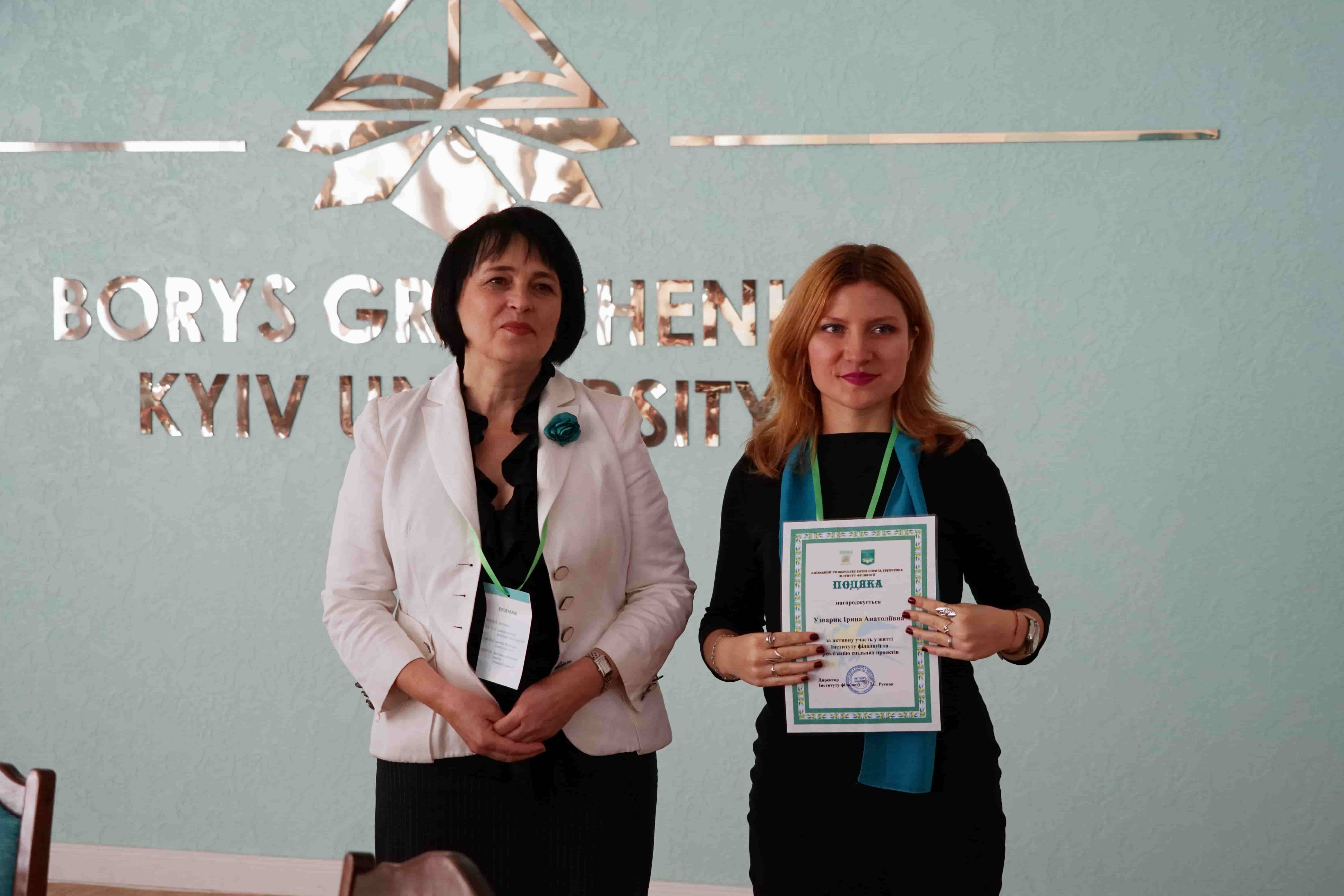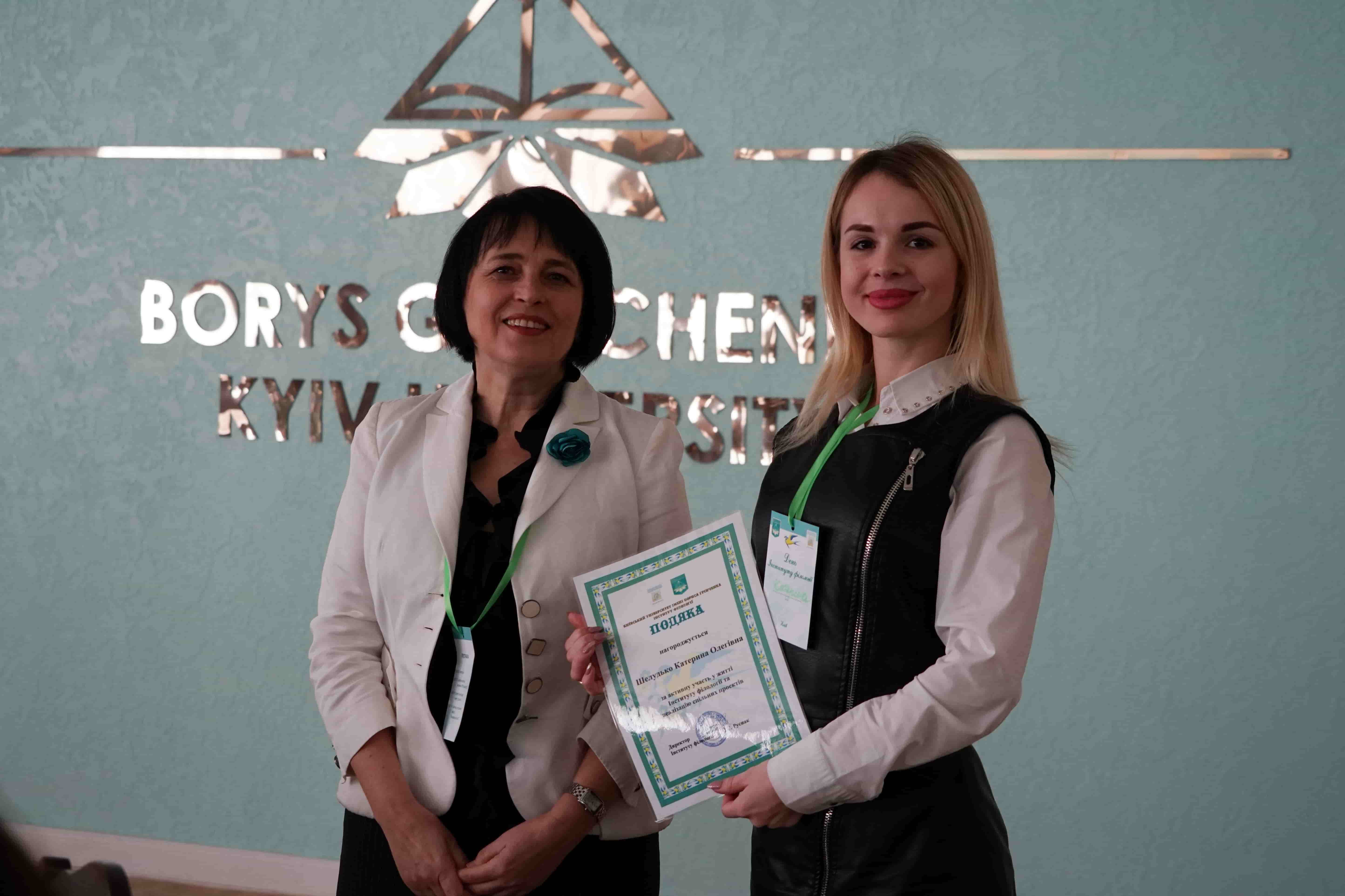 29 березня 2019 року в Інституті філології Київського університету імені Бориса Грінченка відбулося урочисте засідання Вченої ради з нагоди Дня Інституту та Дня філолога. Директор Інституту, доктор філологічних наук, професор Ірина Євгеніївна Руснак привітала учасників поважного зібрання зі святом і вручила почесні відзнаки у номінації «Унікальний філолог» структурним підрозділам Інституту, Науковому товариству студентів, аспірантів, докторантів і молодих учених і Студентській раді. Відзнакою «Унікальний філолог» за неоціненний внесок у розвиток Інституту філології нагороджена доктор філологічних наук, професор Олена Володимирівна Єременко. Подяки Інституту філології за активну участь у житті Інституту філології отримали випускники, які у святковий день провели серію майстер-класів для студентів і співробітників. Мистецьким подарунком стали виступи студентів-філологів Регіни Пилипенко та Анастасії Нєкрасової.