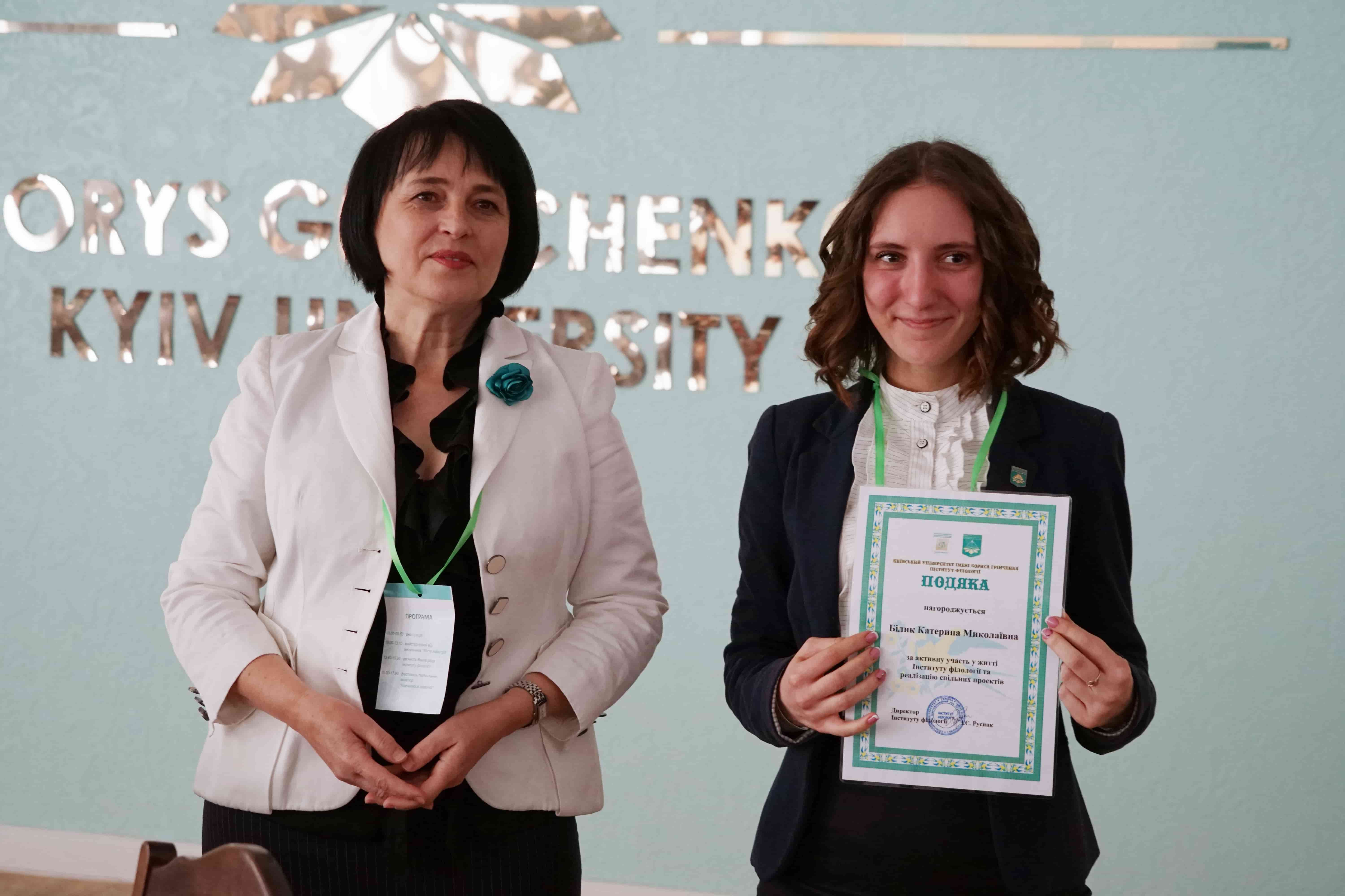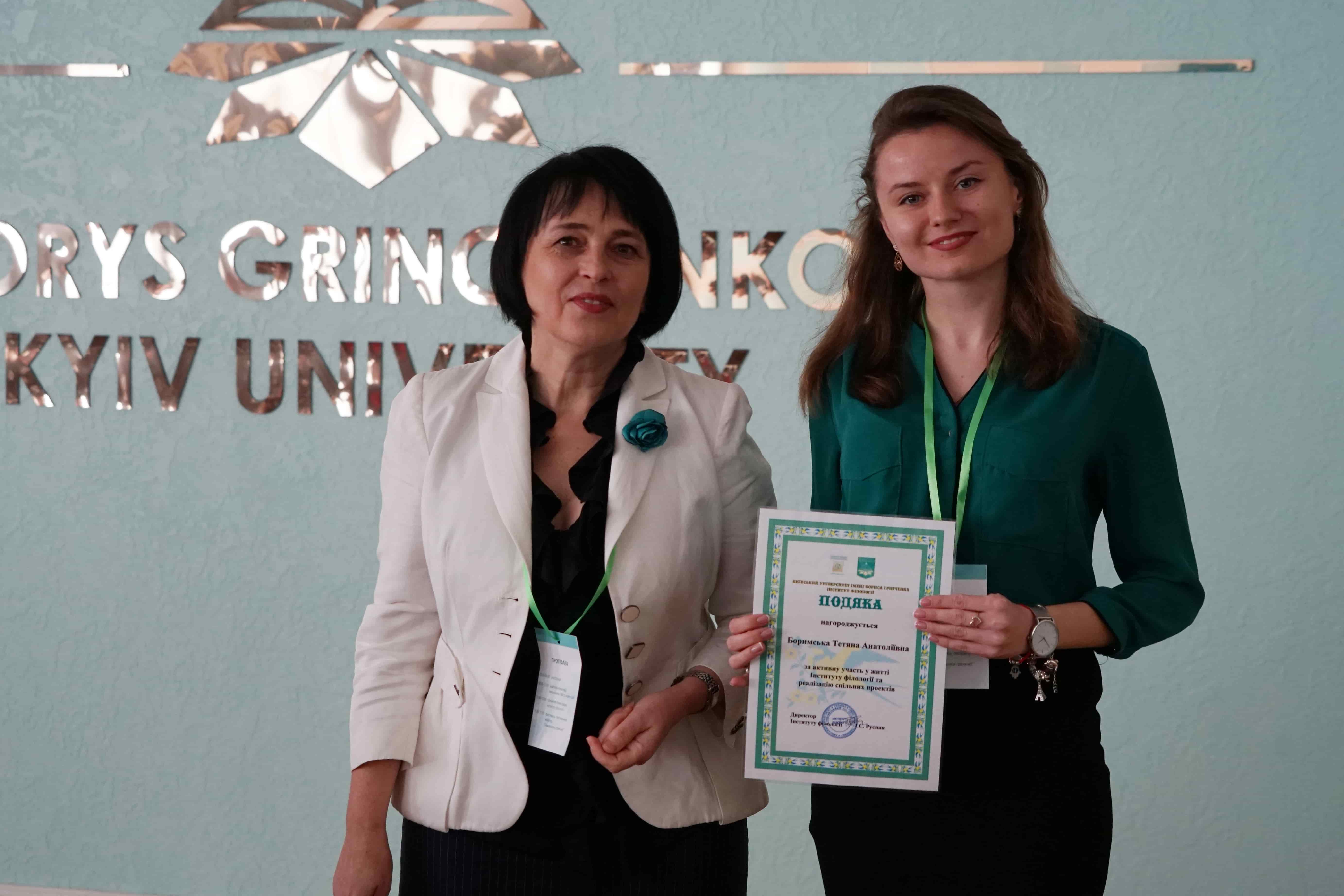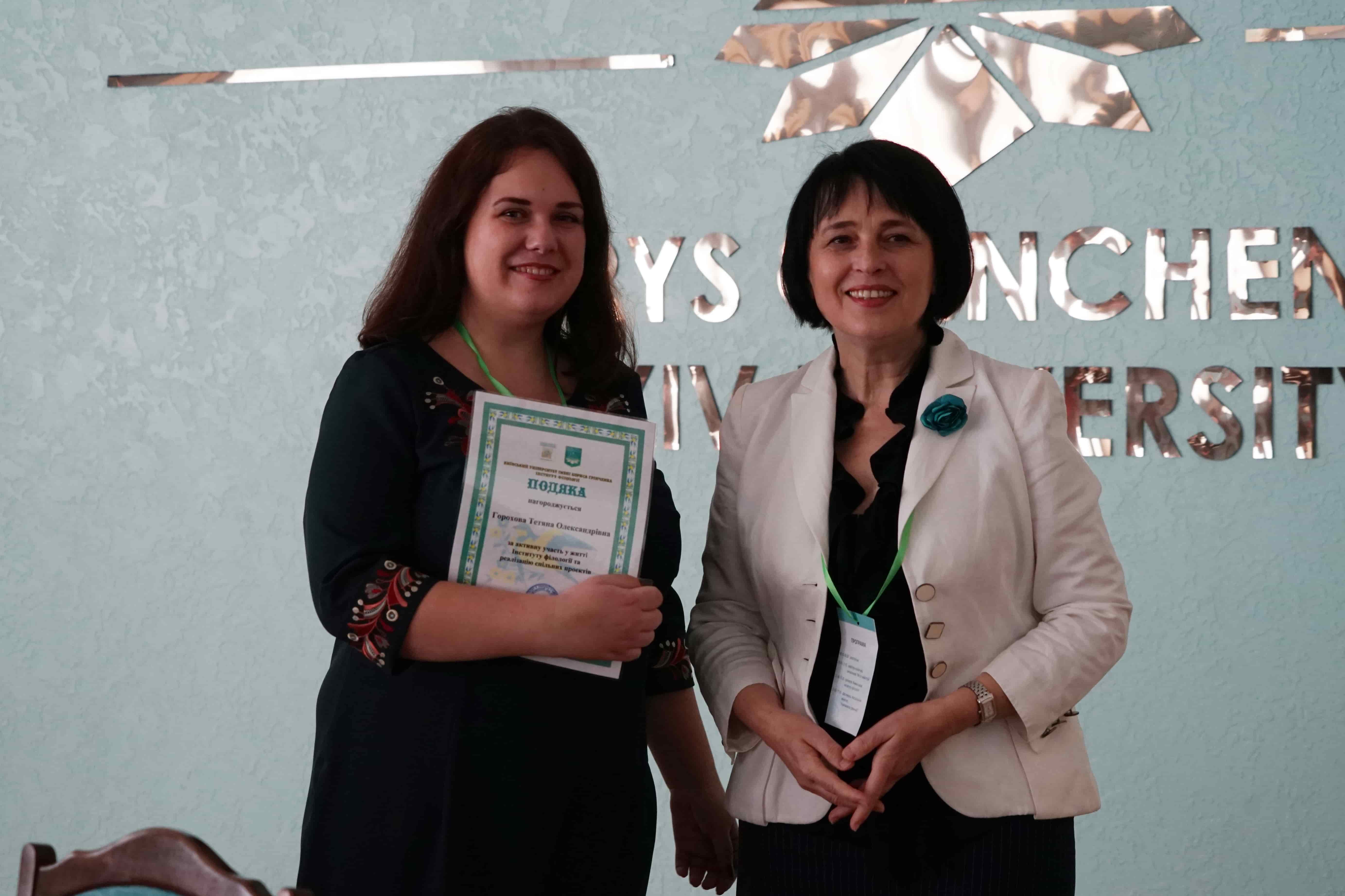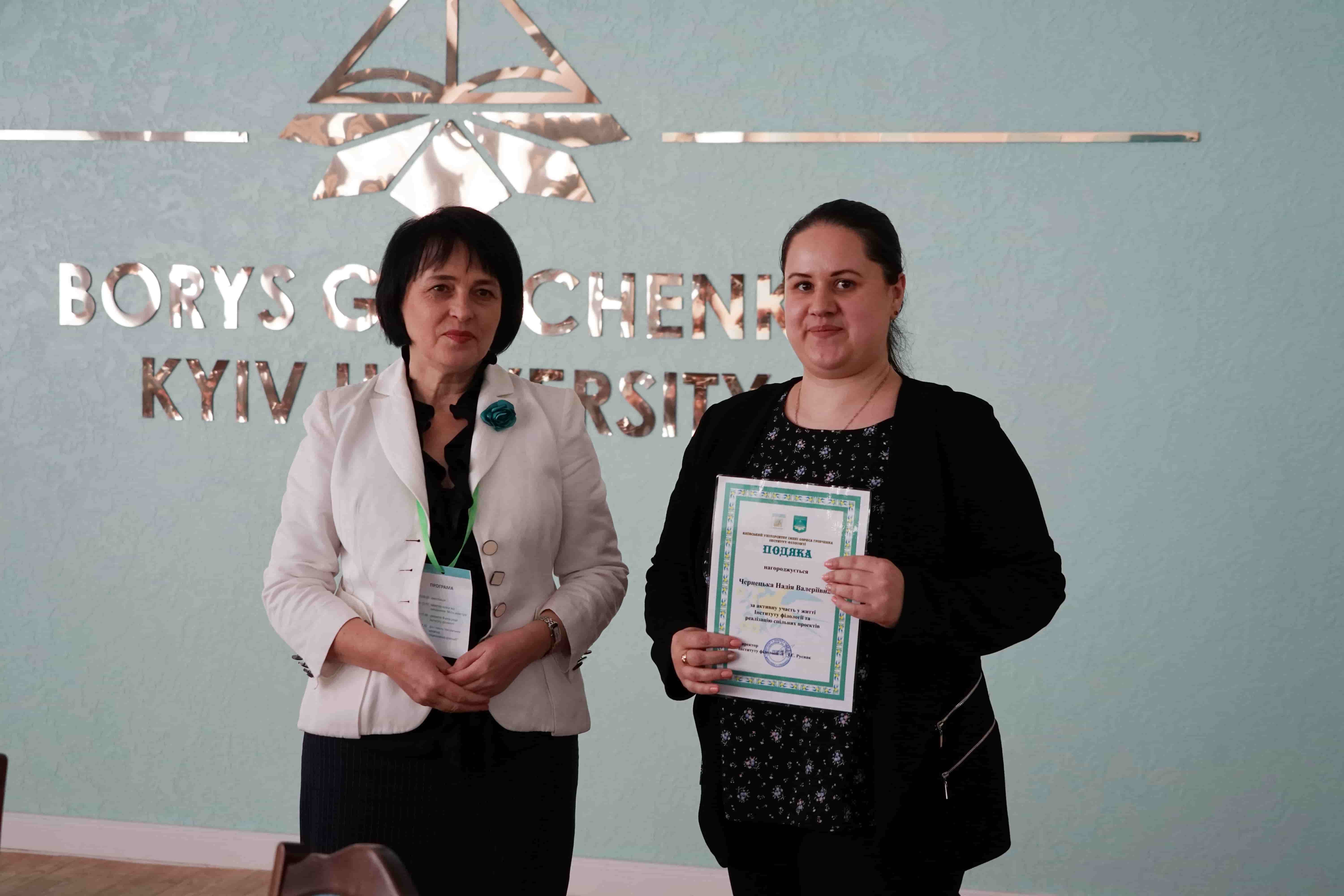 29 березня 2019 року в Інституті філології Київського університету імені Бориса Грінченка відбулося урочисте засідання Вченої ради з нагоди Дня Інституту та Дня філолога. Директор Інституту, доктор філологічних наук, професор Ірина Євгеніївна Руснак привітала учасників поважного зібрання зі святом і вручила почесні відзнаки у номінації «Унікальний філолог» структурним підрозділам Інституту, Науковому товариству студентів, аспірантів, докторантів і молодих учених і Студентській раді. Відзнакою «Унікальний філолог» за неоціненний внесок у розвиток Інституту філології нагороджена доктор філологічних наук, професор Олена Володимирівна Єременко. Подяки Інституту філології за активну участь у житті Інституту філології отримали випускники, які у святковий день провели серію майстер-класів для студентів і співробітників. Мистецьким подарунком стали виступи студентів-філологів Регіни Пилипенко та Анастасії Нєкрасової.