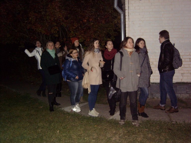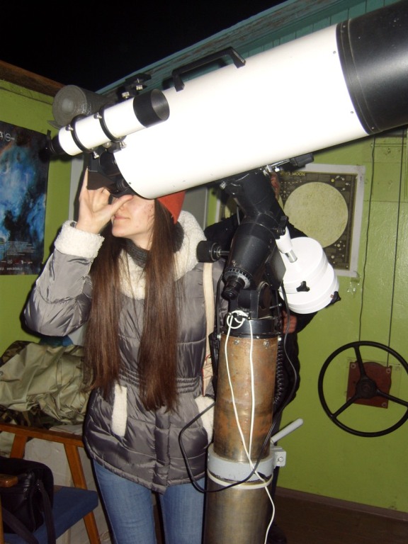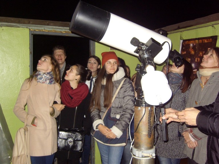 Студенти-філологи спеціальності "Переклад" продовжують традицію опанування професії на виїзних практичних заняттях. Цього разу вони відвідали обсерваторію, де знайомилися з відповідною термінологією, спробували себе у перекладі екскурсії, різних інструкцій тощо. Крім того, набуті знання можна було підкріпити практичними діями - поглянути у телескоп на небо, зазирнути у шахту гирі годинникового механізму глибиною 6 м, власноруч відкрити купол, і просто переглянути виставку фото, зроблених за допомогою телескопа. Головне - крім знань отримали масу позитивних вражень.