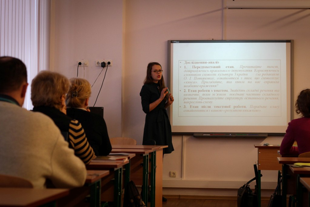 Аспірантка кафедри української мови Інституту філології Юлія Огарь протягом доповіді на тему «Когнітивно-комунікативний підхід до навчання синтаксису в профільній школі: від концепту до тексту» переконала присутніх, що невдовзі в українських школах одним з основних завдань уроків української мови стане формування вмінь адекватного сприймання текстової інформації та створення власних (усних і писемних) висловлювань відповідно до комунікативної мети.