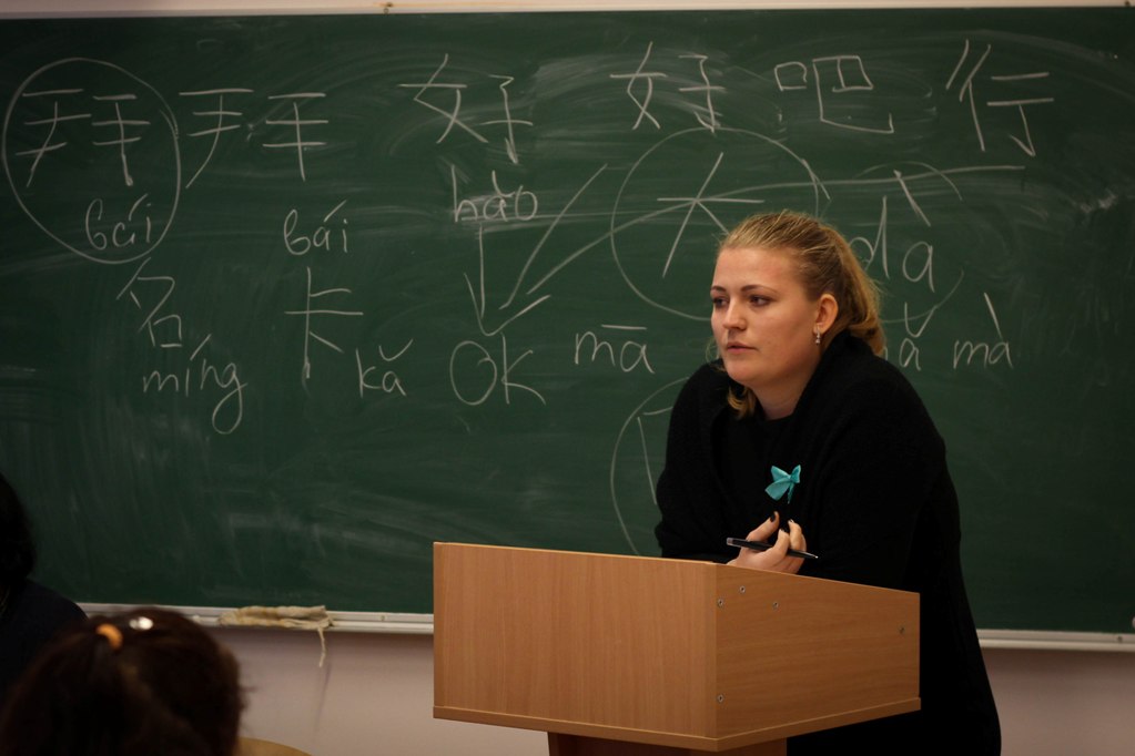 Під час доповіді викладача кафедри східних мов та перекладу Інституту філології Олександри Гуль учасники круглого столу не лише з’ясували, що тенденції до використання іншомовних запозичень в сучасній китайській мові є проявом інтернаціоналізації, уніфікації та спрощення лексичного фонду, а й трішки навчилися розмовляти китайською.