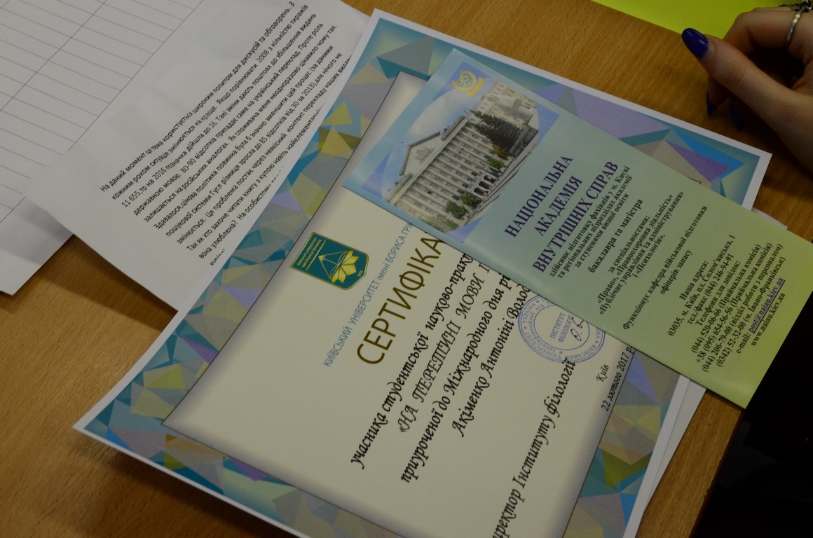22 лютого з нагоди відзначення Міжнародного дня рідної мови в Інституті філології відбулася студентська науково-практична конференція «На перетині мови і права», співорганізаторами якої виступили Національна академія внутрішніх справ та Інститут філології Київського університету імені Бориса Грінченка. Крім курсантів академії та студентів-філологів, участь у конференції взяли студенти факультету права та міжнародних відносин, гості з інших вищих навчальних закладів.