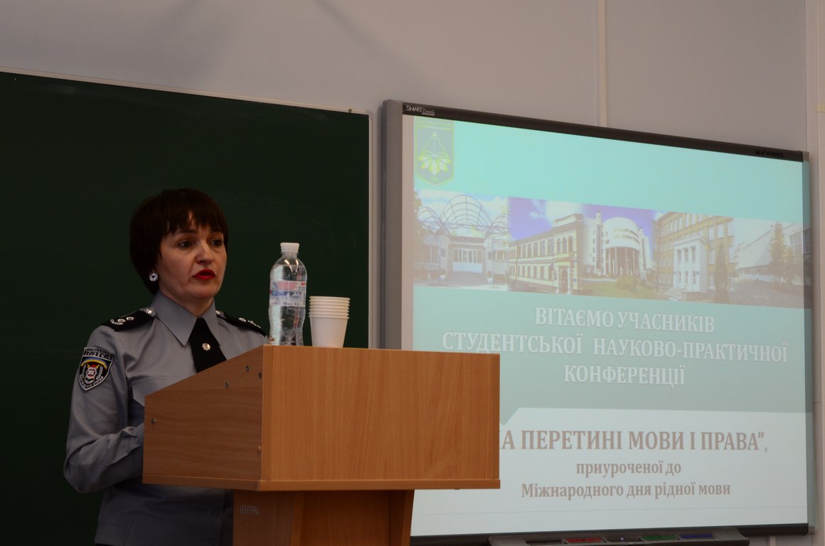 Перш ніж оприлюднити власні наукові здобутки молоді науковці мали змогу послухати доповіді фахівців у галузі правничої лінгвістики старшого викладача кафедри юридичного документознавства Національної академії внутрішніх справ Світлани Василівни Шутенко та доцента кафедри української мови Інституту філології Олени Леонідівни Доценко.