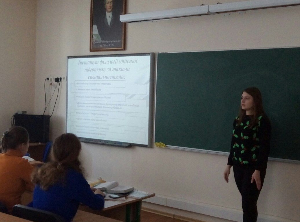 Студенти 3-го курсу спеціальності «Філологія. Українська мова і література» Наталія Марченко, Надія Павленко та Марія Хохель підготували презентацію про особливості святкування Дня рідної мови в різних країнах, про мовні обов’язки громадян кожної держави, що полягають у захисті та збереженні рідної мови як найприродніших і найнеобхідніших способів національного відродження і самоідентифікації; наголосили на тому, що знання мовних стандартів є важливою складовою майбутньої професійної майстерності.