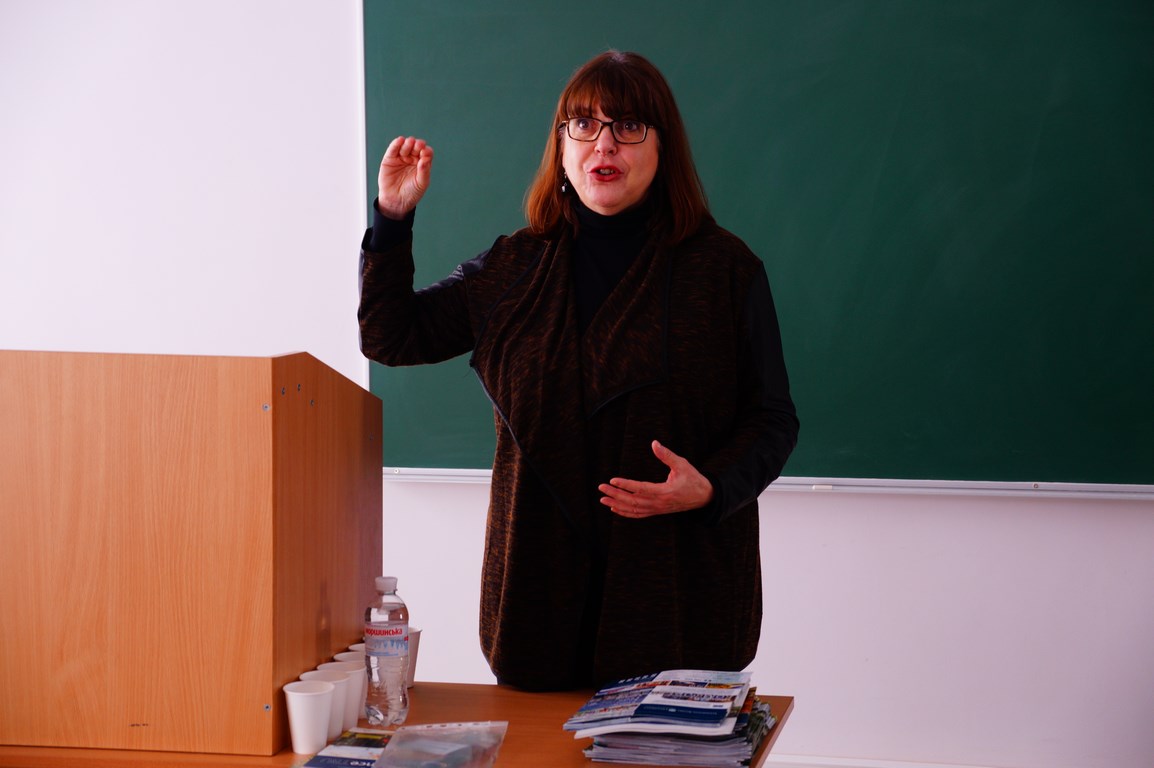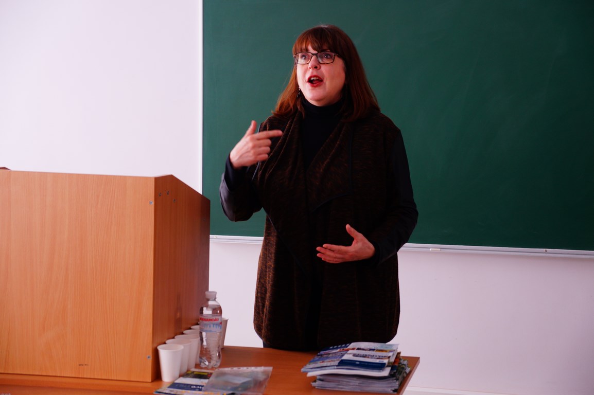 17 березня студенти Інституту філології відвідали гостьову лекцію «Імплементація сучасного світового досвіду викладання іноземних мов для спеціальних цілей у вищих навчальних закладах України» Кетрін Уодделл, викладача кафедри методики навчання іноземним мовам для спеціальних цілей Університету Томпсон Ріверс, Канада. За 15 років викладання ESP (Англійської для Спеціальних Цілей) Кетрін Уодделл розробила та впровадила у навчання спеціалізовані програми вивчення англійської для таких спеціальностей, як педагогіка, соціальна робота, психологія та ін. Цього року вона завітала до Києва на Третій щорічний міжнародний форум викладачів іноземних мов FLT Forum 2017, який відбувся 15-16 березня.Студенти Університету Грінченка отримали унікальну можливість послухати лекцію з досвіду пані Уодделл про техніки й особливості викладання англійської мови як іноземної для спеціальних цілей, яка відбулась за сприяння представника компанії Алеком, Олега Бабенка та спільними зусиллями НДЛ інтернаціоналізації вищої освіти та Інституту філології.