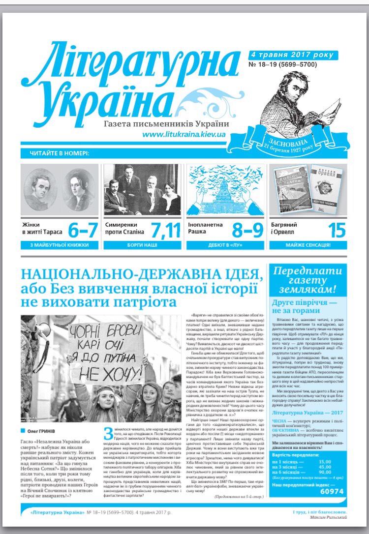 "Літературна Україна" Шановні студенти та викладачі! Вашій увазі пропонується свіжий номер "Літературної України".