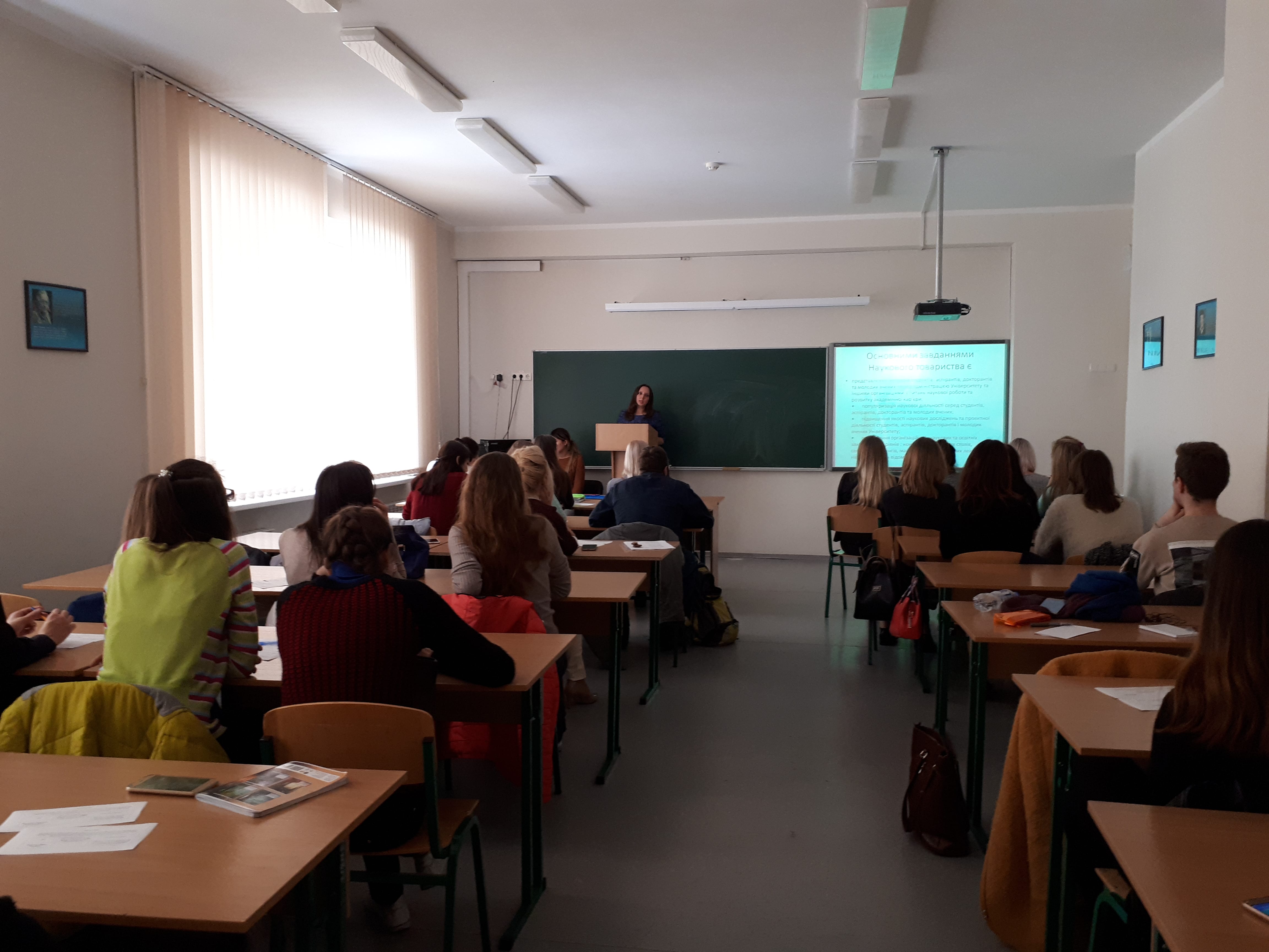 Про роботу Наукового товариства за минулий 2016-2017 навчальний рік звітувала заступник голови товариства попередньої каденції Єлизавета Черних.