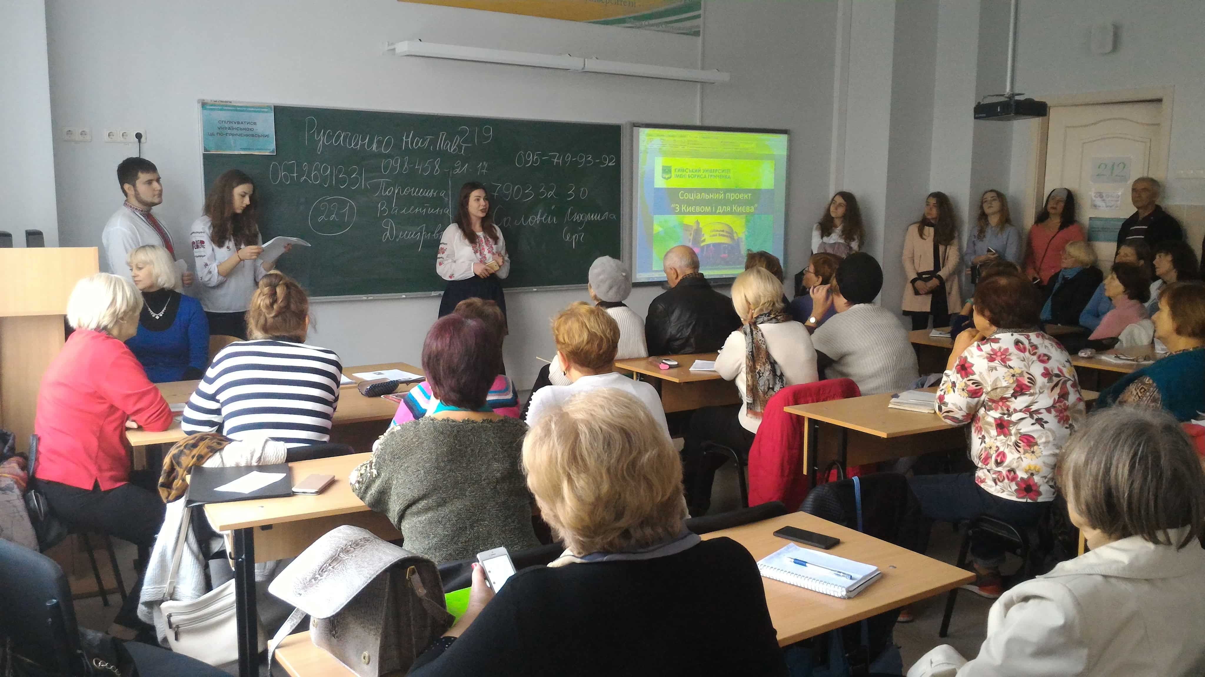 7 жовтня 2017 року в Інституті філології відбулося урочисте відкриття соціального проекту «З Києвом і для Києва». У події взяли участь жителі м. Києва, студенти, викладачі. Кафедри презентували заплановані для реалізації у проекті заходи, а саме: від кафедри української літератури та компаративістики виступила старший викладач Наталія Олексіївна Блохіна з інформацією про літературно- мистецький конкурс «Березневі містерії», доцент кафедри англійської філології та перекладу Людмила Сергіївна Соловей розповіла про особливості діяльності школи англійської мови, старший викладач кафедри германської філології Валентина Дмитрівна Порошина запросила присутніх до спільного святкування Різдва в німецькомовних країнах, викладач кафедри східних мов Лендьєл Наталія Василівна розповіла гостям про школу турецької мови, доцент кафедри романської філології та порівняльно-типологічного мовознавства Марина Анатоліївна Зверева наголосила на діяльності школи французької та іспанської мови, доцент кафедри української мови Русаченко Наталія Павлівна ознайомила з особливостями поглибленого вивчення української мови, доцент кафедри світової літератури Галина Євгеніївна Шовкопляс запросила гостей до спільних екскурсій та подорожей, зі словами привітання долучилася заступник директора Інституту філології Саврасова-В’юн Тетяна Олександрівна. На завершення урочистого відкриття проекту студентка 2 курсу Інституту Муслієнко Анастасія виконала «Пісню про матір» і запросила всіх присутніх до загального фото.