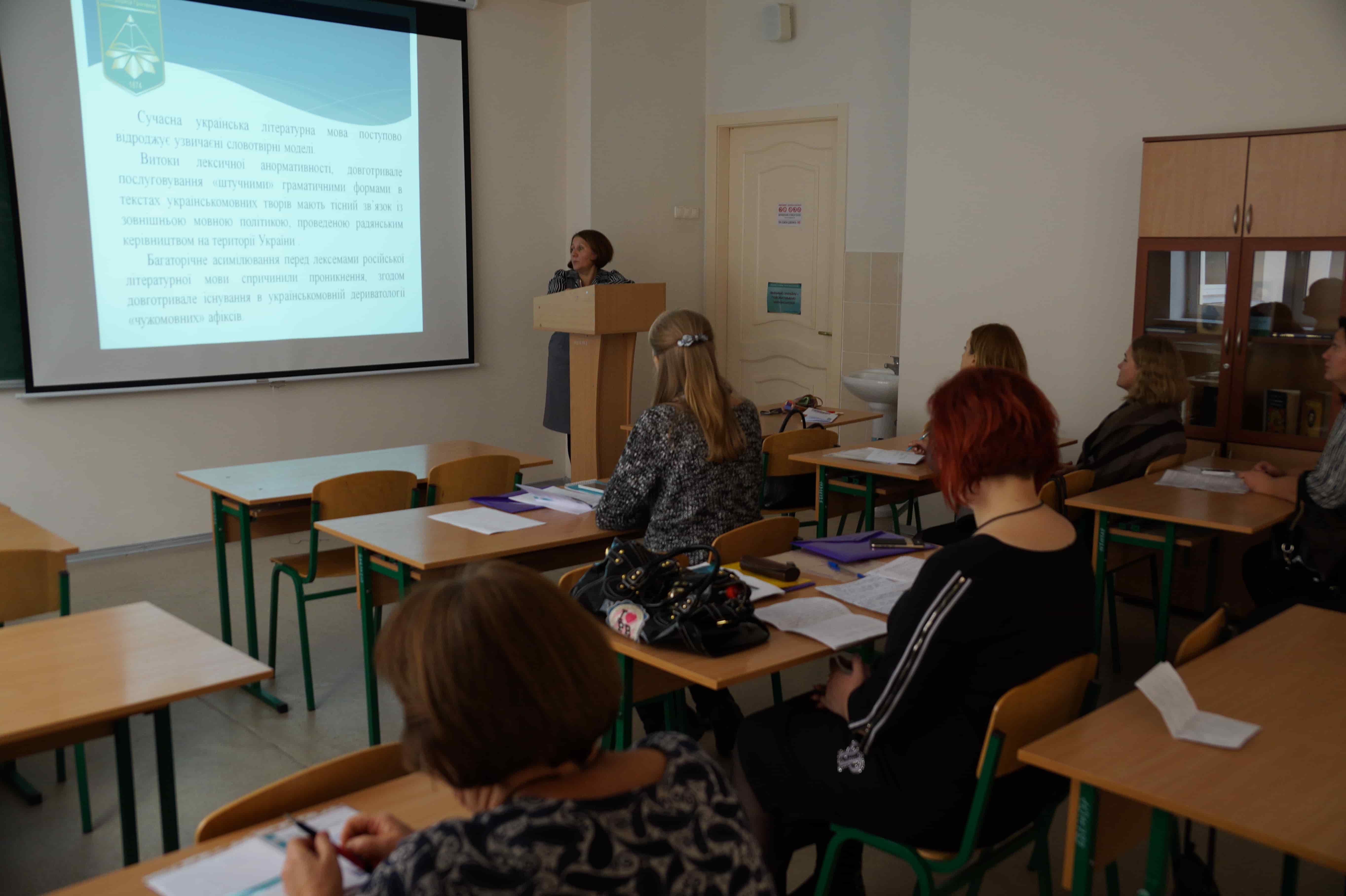Не менш цікавими були й виступи лінгводидактів. Так, завідувач кафедри української мови і літератури Національного університету «Острозька академія», доктор педагогічних наук, професор Іван Миколайович Хом’як розповів про компетентнісний підхід до навчання українського правопису.