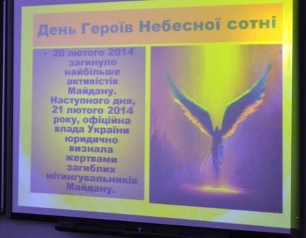 - бесіда зі студентами другого курсу «Небесна сотня. Герої не вмирають!» (модератор Н. П. Русаченко, кафедра української мови);