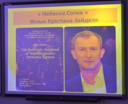 - демонстрація фільму Крістіана Зайделя «Небесна сотня» (модератор І. А. Лягіна, кафедра романської філології та порівняльно-типологічного мовознавства);