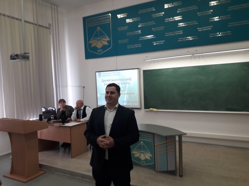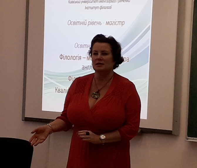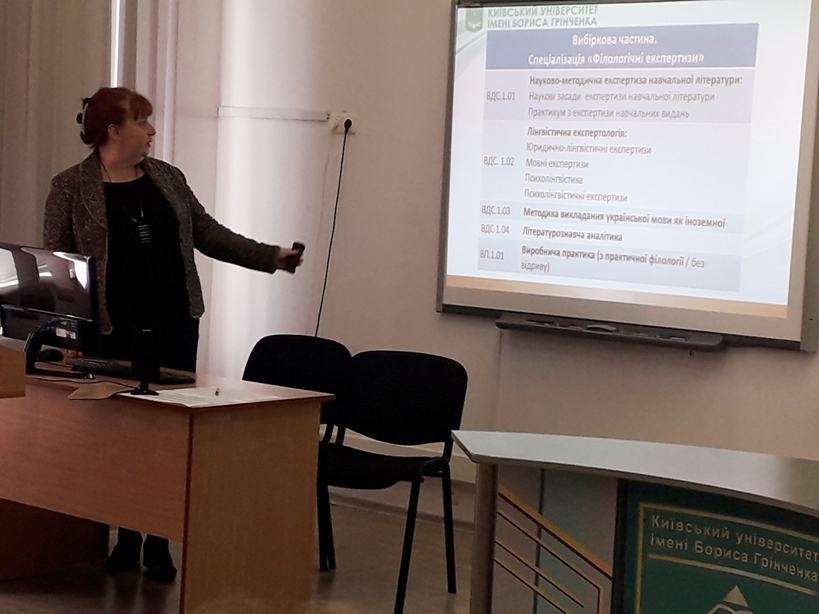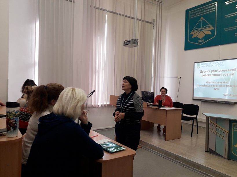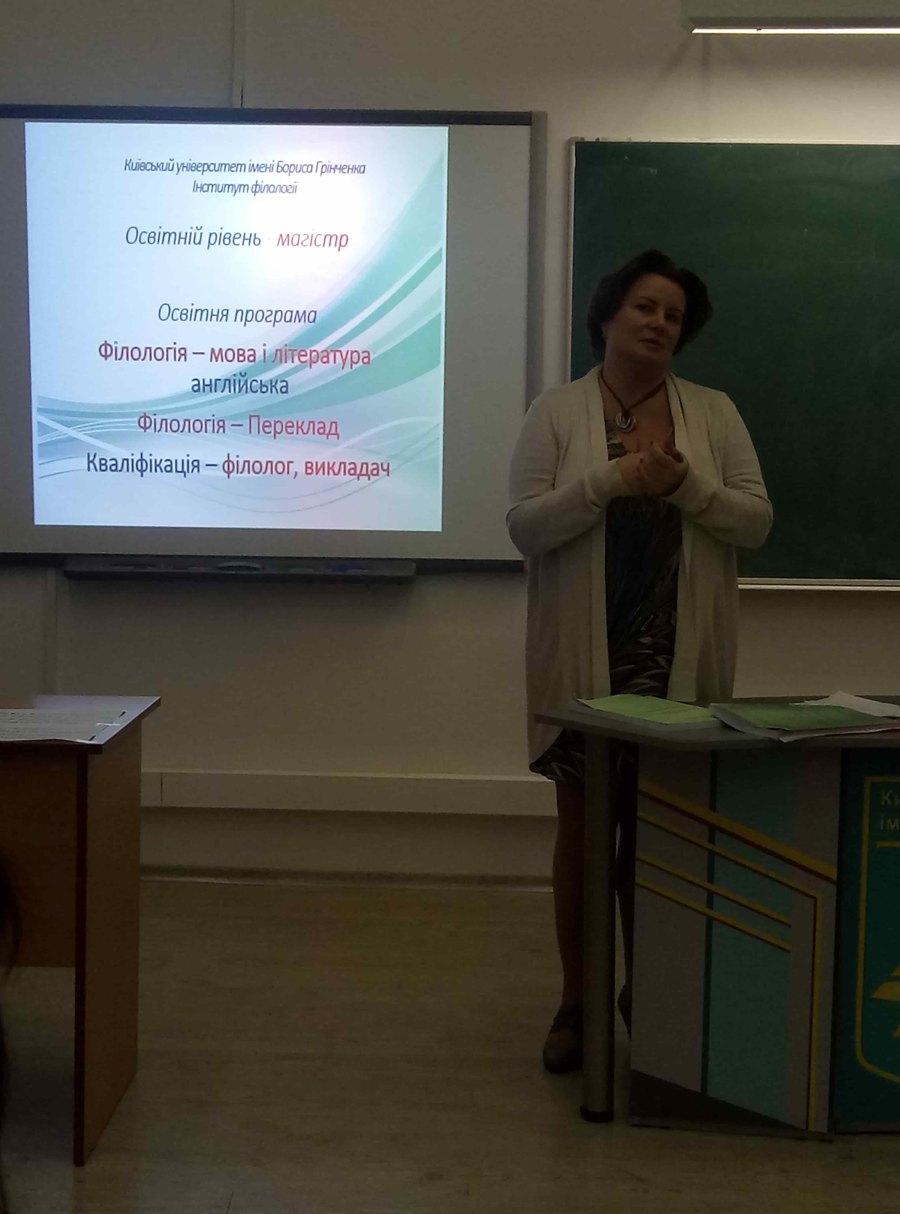 24 вересня 2019 року студентам IV курсу бакалавріату розповіли про наукові й фахові перспективи, які відкривають їм різні освітні програми в магістратурі Інституту філології Київського університету імені Бориса Грінченка. Гаранти освітніх магістерських програм, представники кафедр англійської філології та перекладу, германської філології, романської філології та порівняльно-типологічного мовознавства, світової літератури, східних мов та перекладу, української літератури і компаративістики та української мови розповіли студентам про переваги другого (магістерського) рівня вищої освіти, про привабливість поглибленого оволодіння фаховими компетенціями, можливості перехресного вступу на суміжні спеціальності, родзинки магістерських програм, які сприятимуть успішному працевлаштуванню. У заході взяли участь і ті, хто вже скористався надбаннями магістерської освіти, – аспіранти кафедри української мови Тетяна Резнік та Юлія Набок-Бабенко, які розповіли про привабливість наукового пошуку, можливість саморозвитку саме в Київському університеті імені Бориса Грінченка.