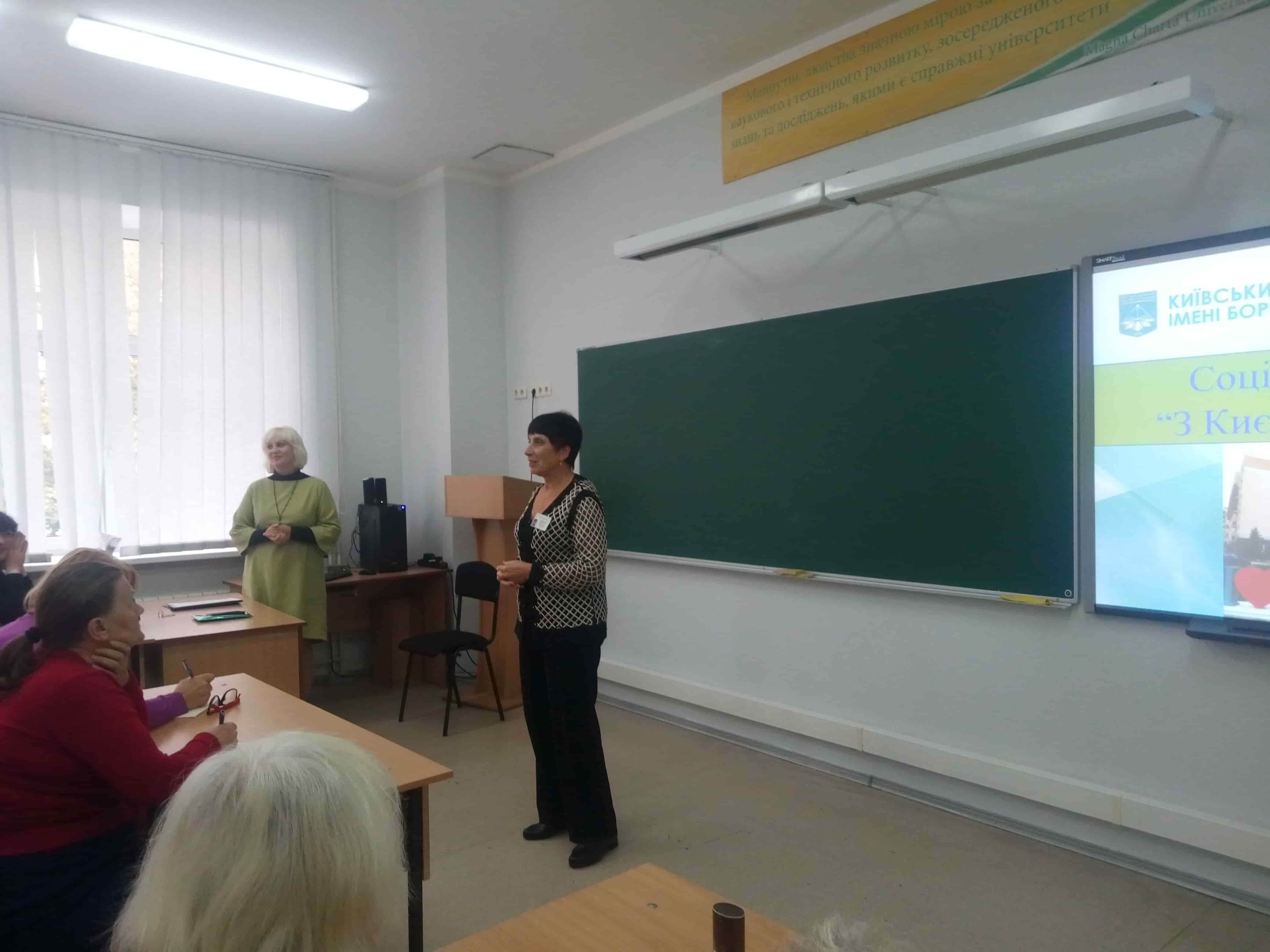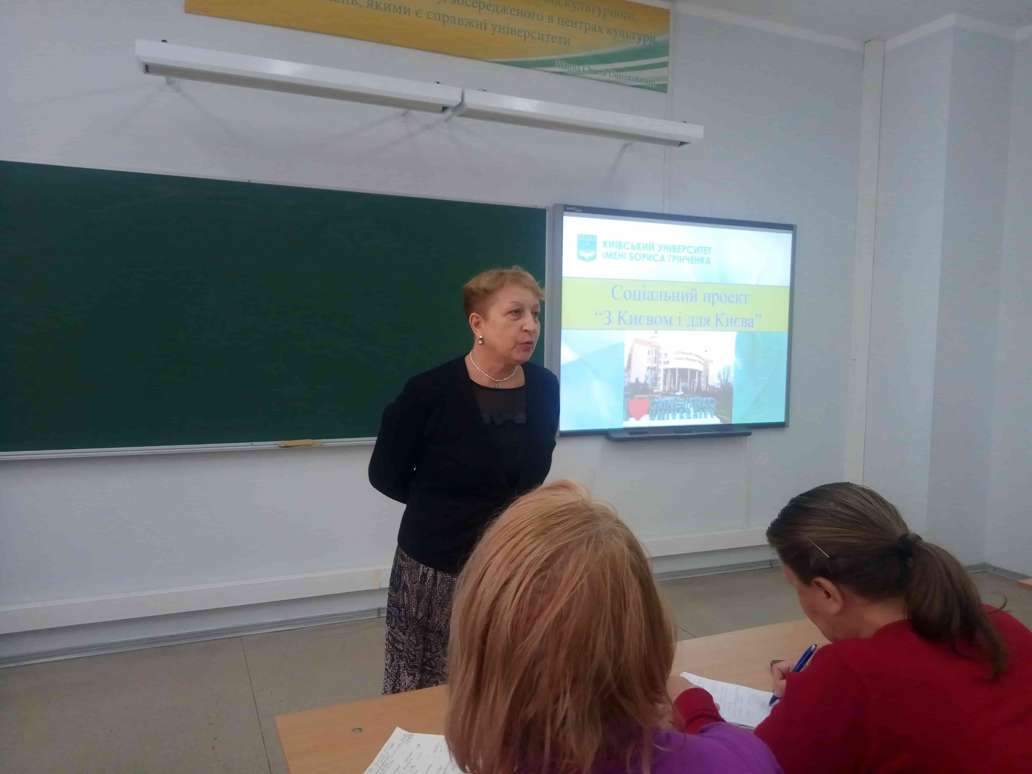 27 вересня 2019 року в Інституті філології відбулося відкриття Х сезону соціального проекту «З Києвом і для Києва». Зі словами привітання до жителів Оболоні, які вже давно вподобали затишні аудиторії Київського університету імені Бориса Грінченка, звернулася директор Інституту філології, доктор філологічних наук, професор Ірина Євгеніївна Руснак. Кафедри презентували основні заходи реалізації проекту. Наталія Олексіївна Блохіна, старший викладач кафедри української літератури та компаративістики, виступила з інформацією про літературно-мистецький конкурс «Березневі містерії», конкурс «Із янголом на плечі», розповіла про творчий проект «Весняна театральна школа». З особливостями поглибленого вивчення української мови присутніх познайомила Наталія Павлівна Русаченко, доцент кафедри української мови, кандидат філологічних наук, і запропонувала приєднатися до діяльності розмовного клубу «Говоримо українською», занять з культури усного та писемного мовлення. Доцент кафедри світової літератури, кандидат філологічних наук Галина Євгеніївна Шовкопляс запросила гостей на літературно-просвітницькі лекції та спільні екскурсії славетними місцями України. Наприкінці заходу наші гості мали змогу не лише поспілкуватися з представниками кафедр Інституту філології, але й визначитися з уподобаннями для подальшої участі в соціальному проекті «З Києвом і для Києва».