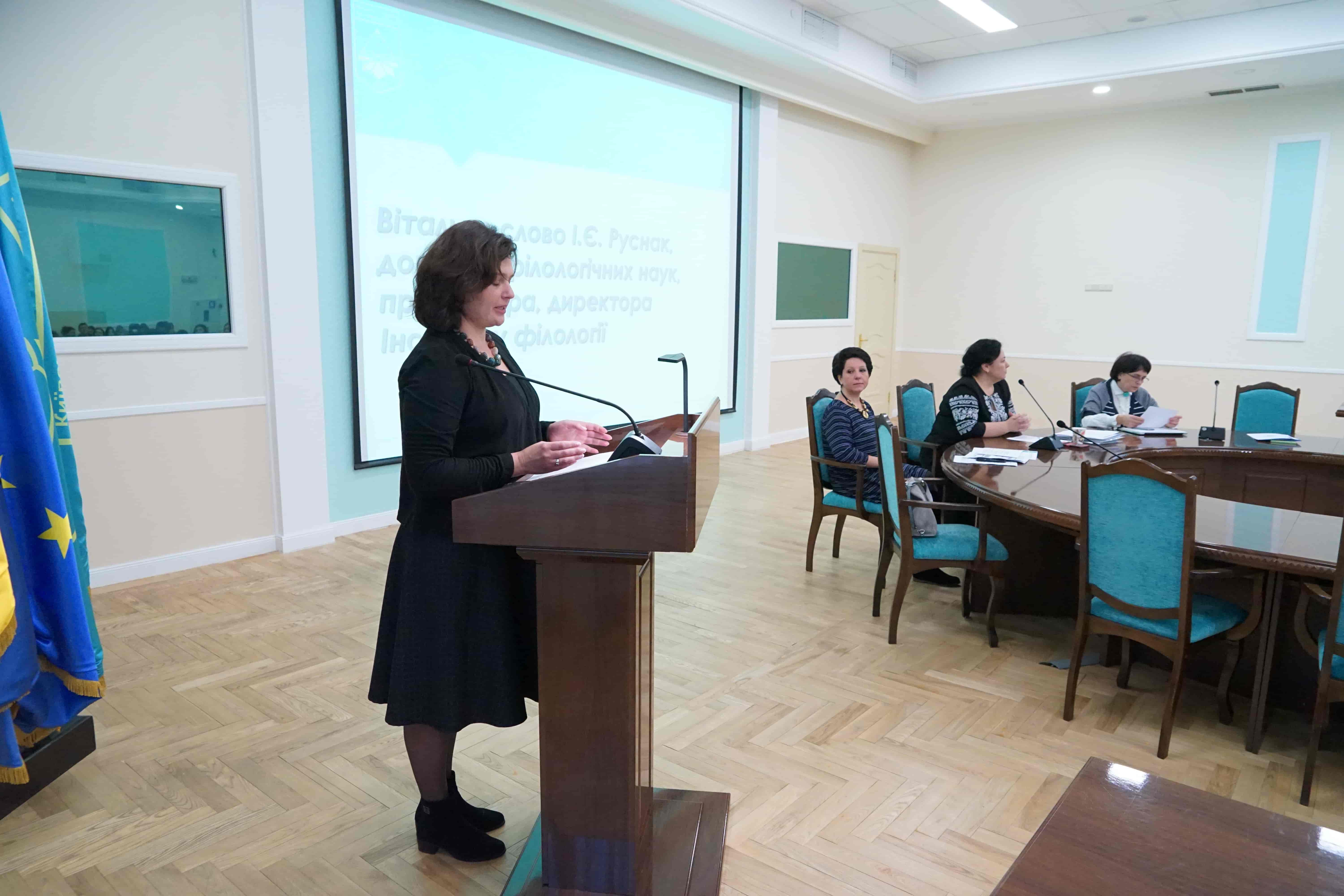 Конференцію вітальним словом відкрила Ірина Євеніївна Руснак, директор Інституту філології Київського університету імені Бориса Грінченка, доктор філологічних наук.