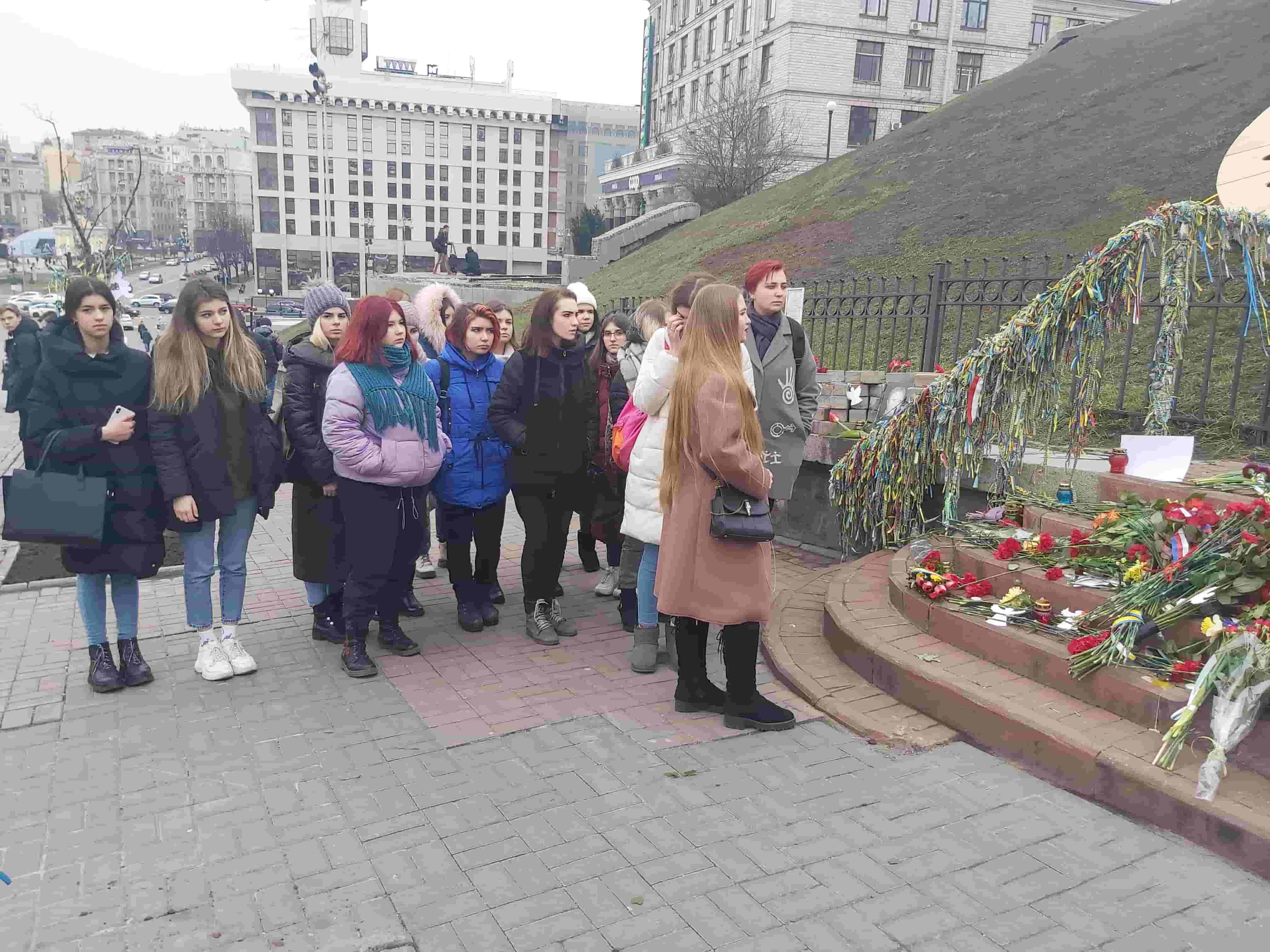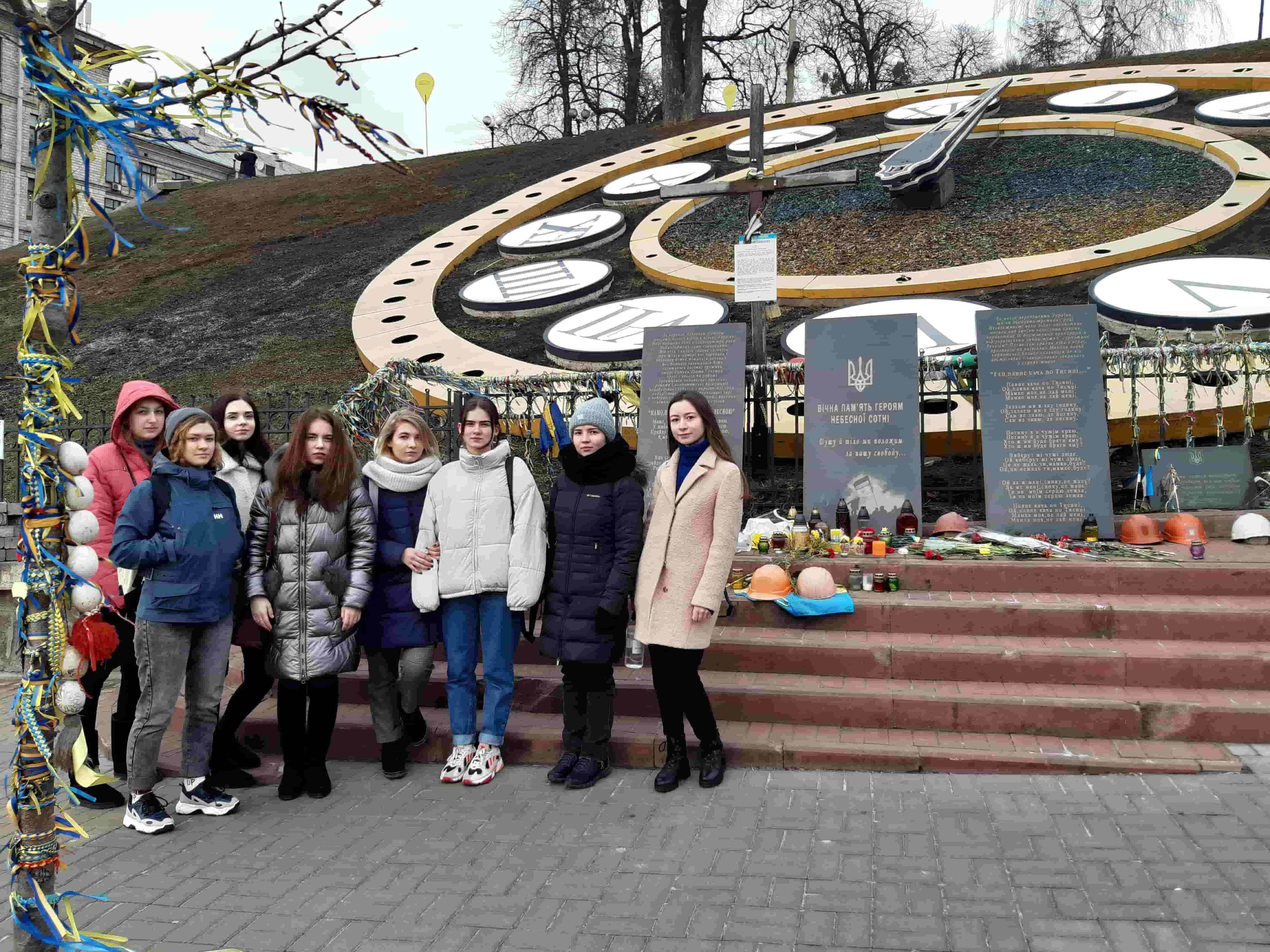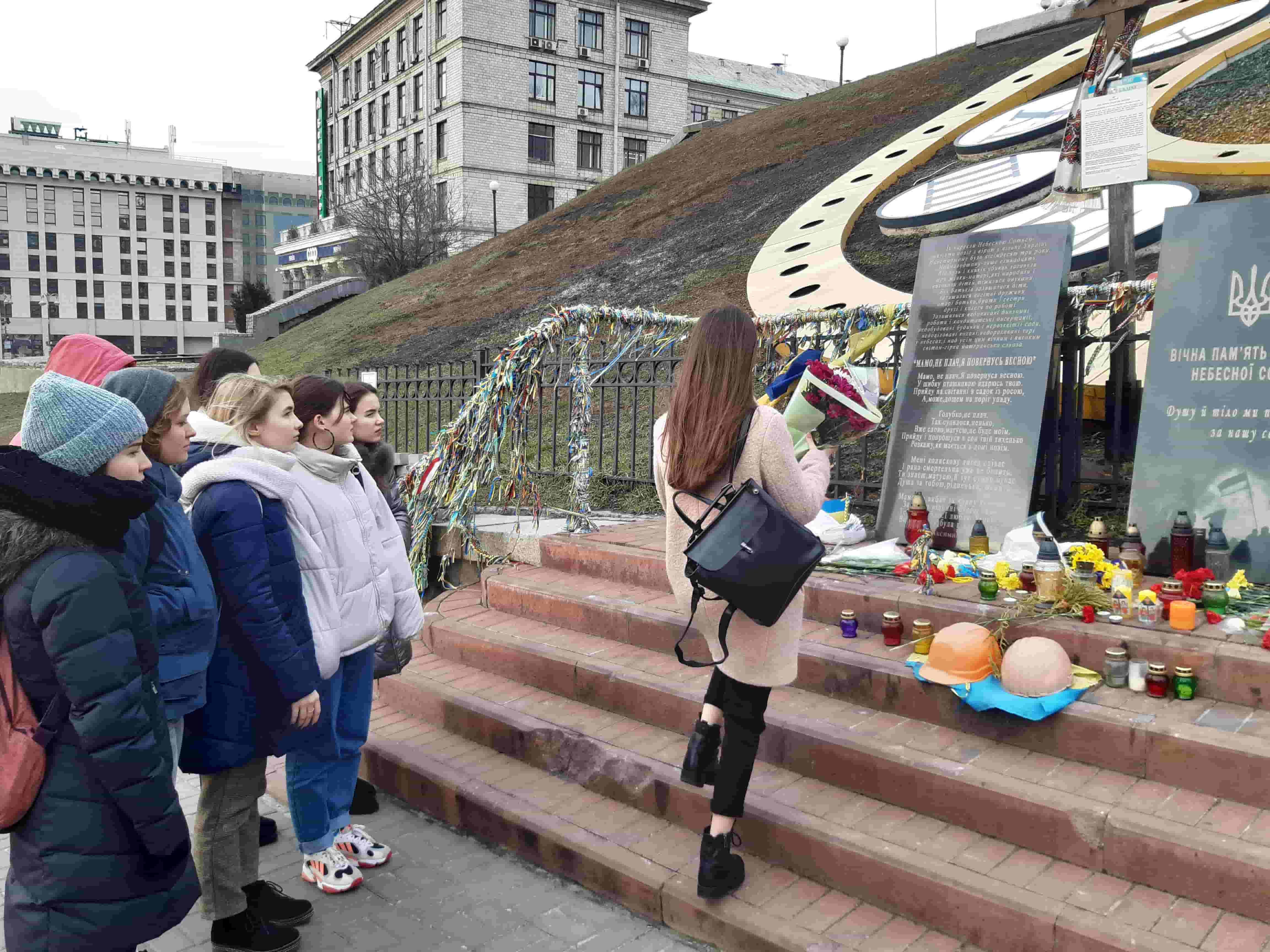 покладання квітів, запалювання свічок біля Національного меморіального комплексу Героїв Небесної Сотні (кафедра української мови, Т. Вінтонів, Т. Горохова);