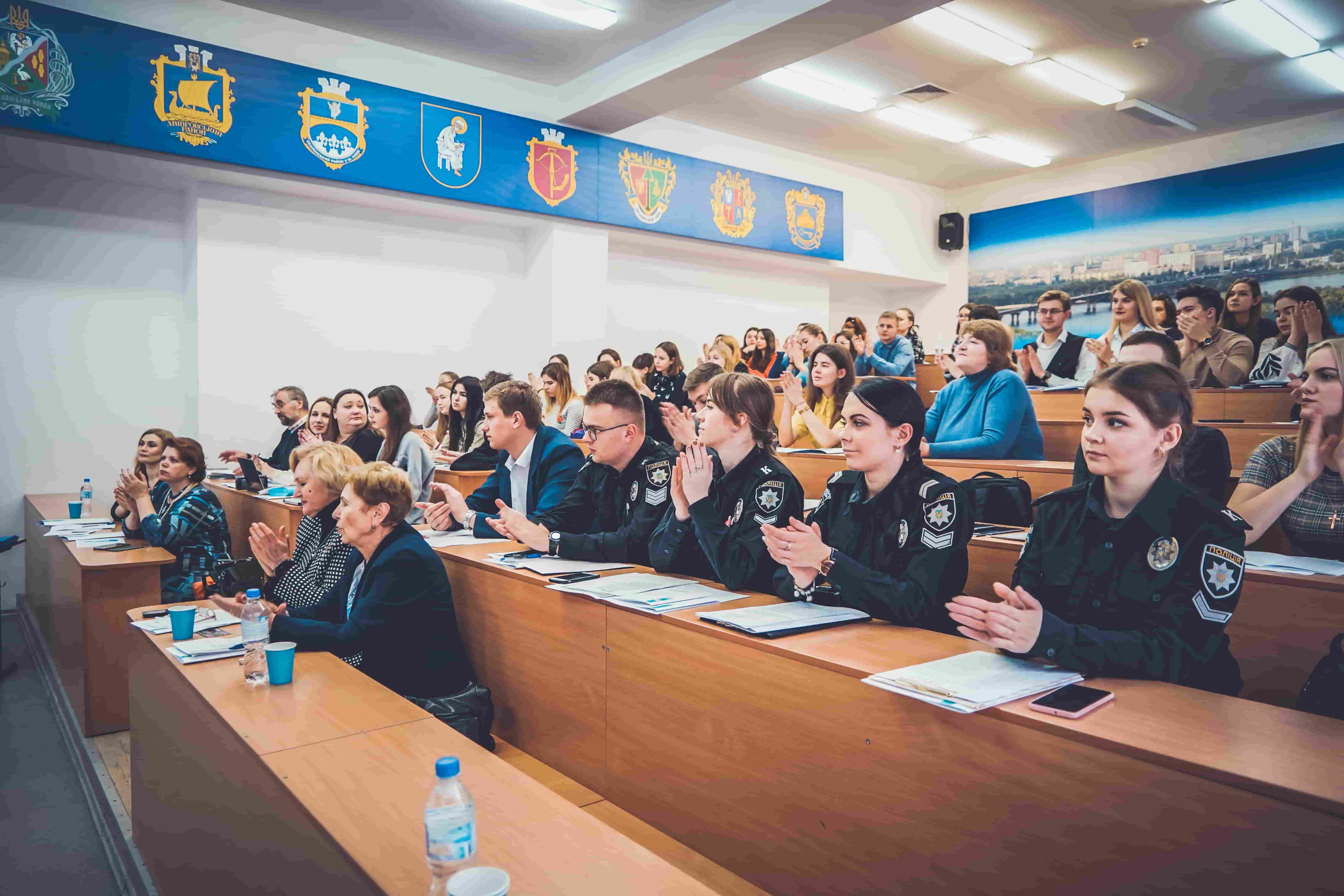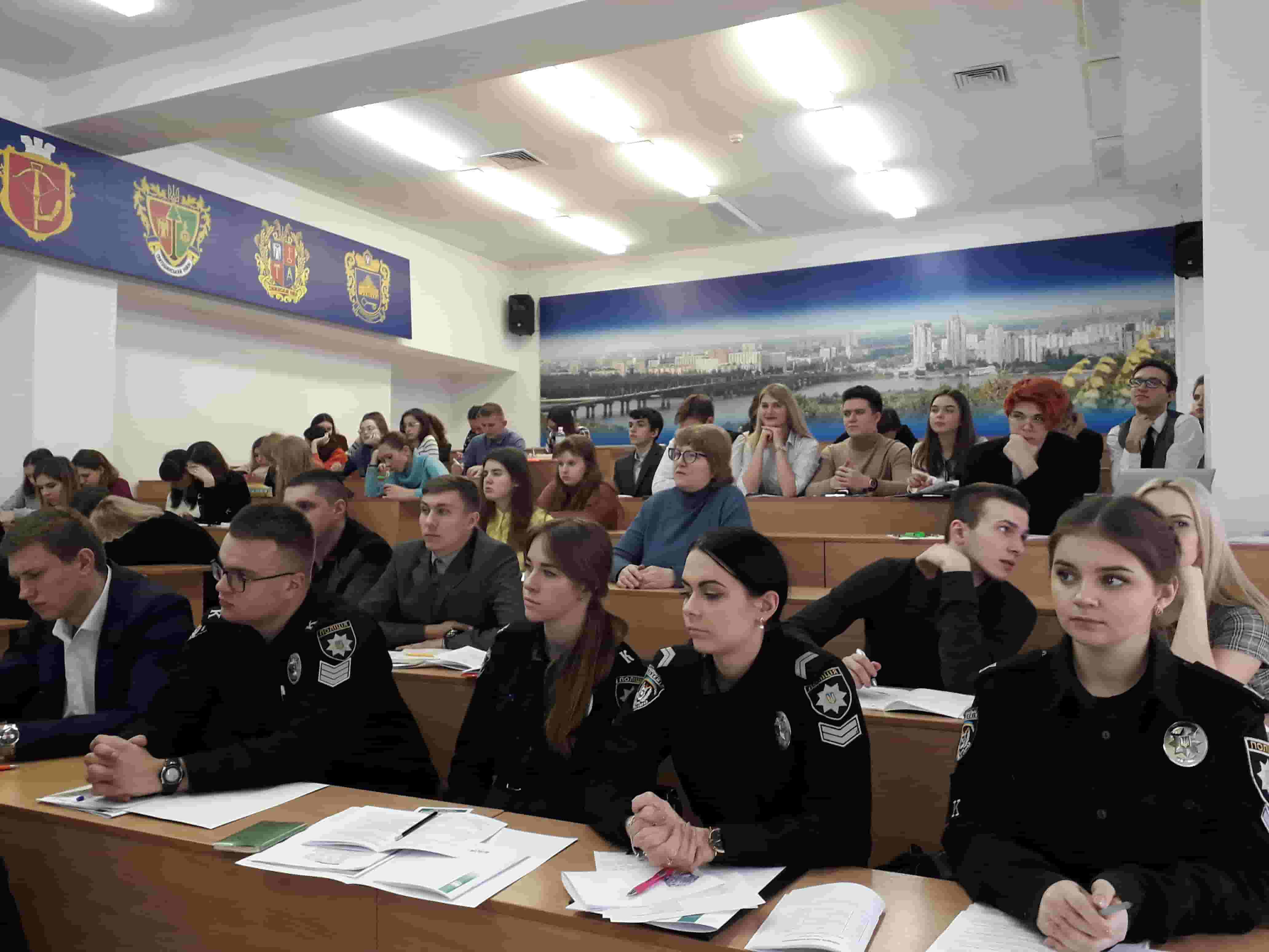 Протягом пленарного засідання студенти і курсанти мали чудову нагоду ознайомитися з основними напрямами юридичної лінгвістики, які були представлені в доповідях провідних спеціалістів України в цій царині: лінгвістичної експертології (Дудник Зоя, завідувач лабораторії експериментальної фонетики Інституту філології Київського національного університету імені Тараса Шевченка, кандидат філологічних наук; Скляр Олена, аспірантка Інституту філології Київського університету імені Бориса Грінченка), термінознавства (Артикуца Наталія, викладач Української школи законотворчості Інституту законодавства Верховної Ради України, керівник програми «Науково-лінгвістичне забезпечення нормопроектування» Центру законопроектних студій, кандидат філологічних наук, доцент; Симоненко Людмила, провідний науковий співробітник Українського мовно-інформаційного фонду НАН України, кандидат філологічних наук, професор; Нелюба Анатолій, професор кафедри української мови Харківського національного університету ім. В.Н. Каразіна, доктор філологічних наук, доцент; Хавкіна Любов, завідувач кафедри журналістики філологічного факультету Харківського національного університету ім. В.Н. Каразіна, доктор наук із соціальних комунікацій, професор; Копилова Лариса, старший викладач кафедри журналістики філологічного факультету Харківського національного університету ім. В.Н. Каразіна, кандидат наук із соціальних комунікацій; Теодорська Людмила, старший викладач кафедри журналістики філологічного факультету Харківського національного університету ім. В.Н. Каразіна, кандидат наук із соціальних комунікацій), юридичного перекладознавства (Палійчук Еліна, кандидат філологічних наук, старший викладач кафедри англійської філології та перекладуІнституту філології Київського університету імені Бориса Грінченка; Диба Ігор, студент IІІ курсу Інституту філології Київського університету імені Бориса Грінченка).