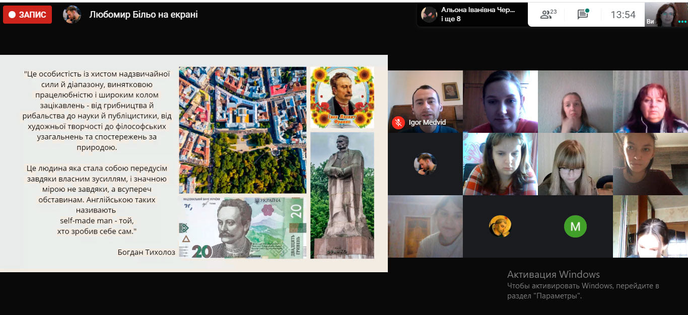 Коли запрошуєш на пару фахівців з промоції не лише класика, але й його дітей, кота і груші, можна з впевненістю очікувати найкращих вражень, бо вони не підведуть. Наші гості заступники директора Музею Франка (Дім Франка - Franko House) Ігор Медведь та Любомир Більо розповідали студентам-україністам про авторські екскурсії, мобільну виставку-лабіринт «Франко від А до Z», мурал із зображенням Петра Франка і пироги з грушами, з дерева, що росло ще за часів письменника. Все це створило яскраву і захопливу форму для розмови про сучасну стратегію музею, командну роботу, заходи промоції та пошук коштів за допомогою грантів та аукціонів. Приємною несподіванкою для нас стало долучення до розмови директора Музею Богдана Тихолоза, який справив враження не лише як харизматичний керівник, але і як мовна особистість, чиї зауваги можна розтягувати на афоризми.