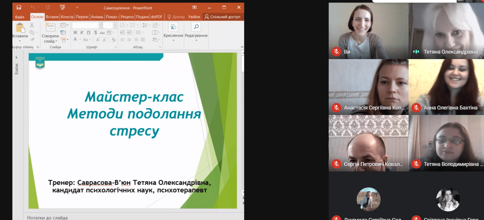 - «Методи подолання стресу» (тренер Т. Саврасова-В’юн);