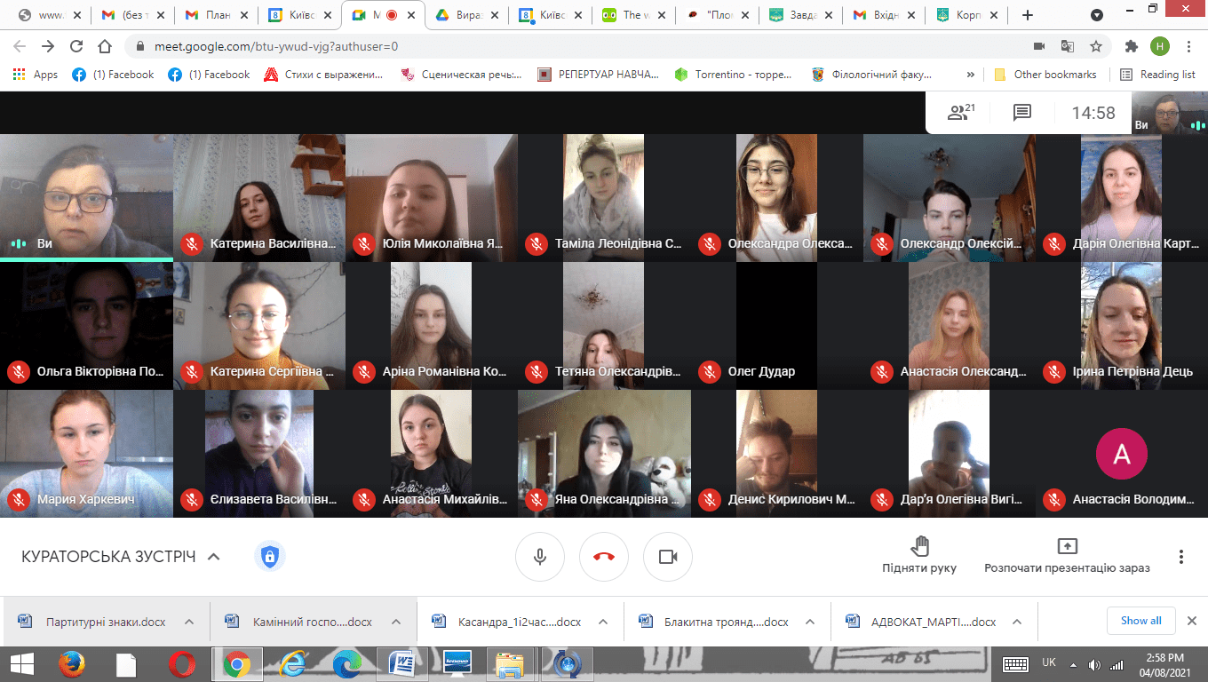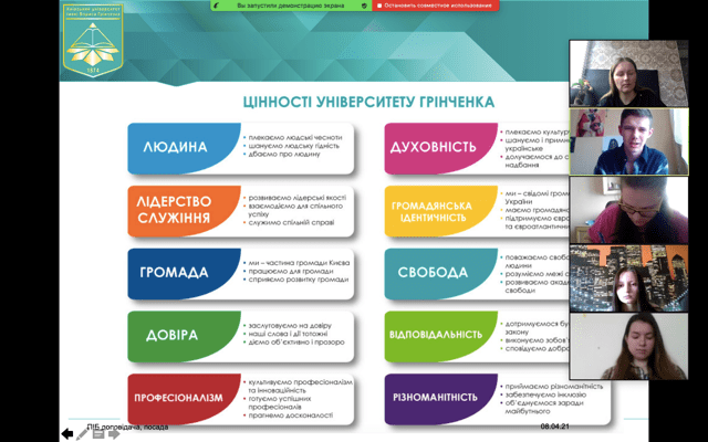 06-09 квітня 2021 року куратори Інституту філології Київського університету імені Бориса Грінченка у рамках реалізації заходів із розвитку корпоративної культури студентів провели серію кураторських годин: