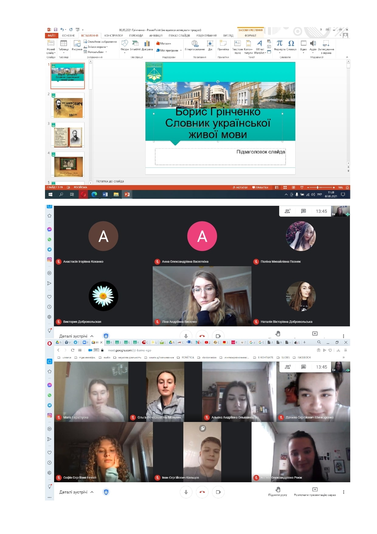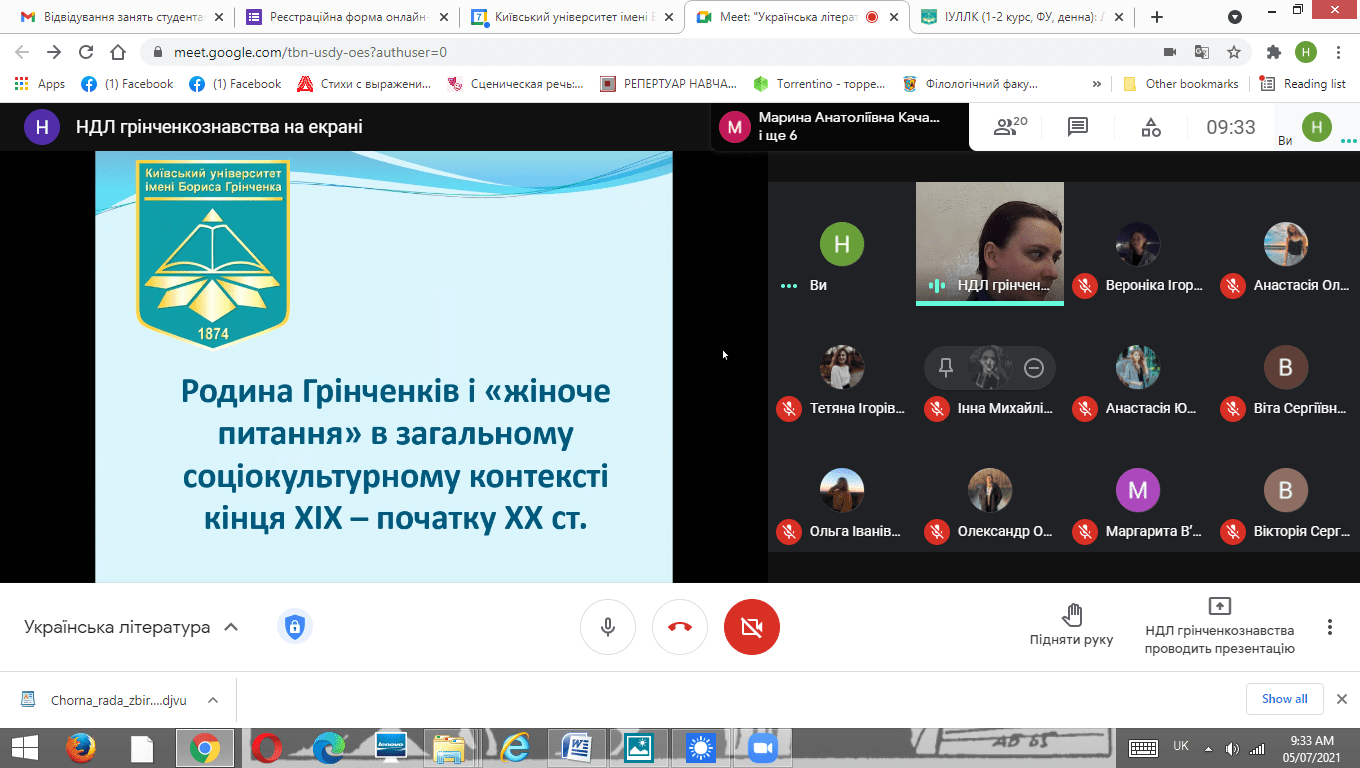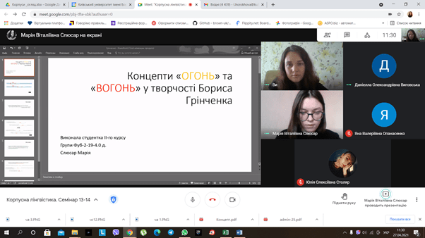 - тематичного онлайн-семінару «Творчість Бориса Грінченка крізь призму технологій комп'ютерної лінгвістики» (модератор – Горохова Т.О., кафедра української мови);