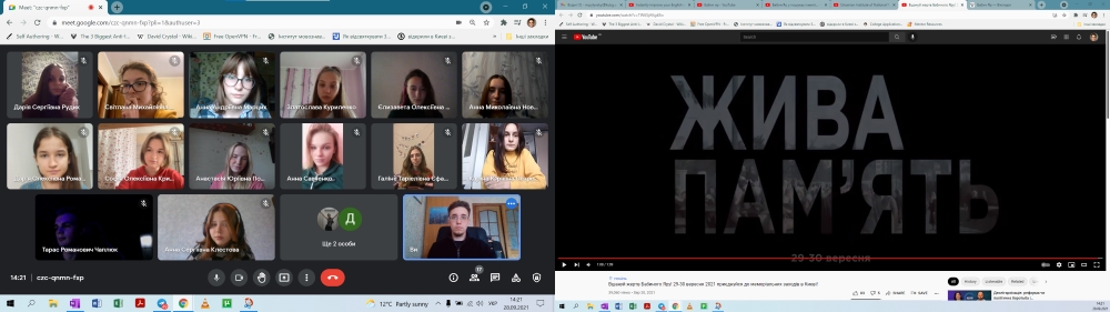 29 вересня 2021 року викладачі та студенти Інституту філології Київського університету імені Бориса Грінченка провели пам’ятні заходи до 80-х роковин трагедії у Бабиному Яру. Студенти переглянули віртуальну виставку «Трагедія Бабиного Яру» (модератор – Блохіна Н.О., кафедра української літератури, компаративістики і грінченкознавства); взяли участь у проєкті «Українці-рятівники, марафон історій» (модератор – Лахно Н. В., кафедра української мови); стали учасниками екскурсії «Бабин Яр – місце всесвітньої трагедії» (модератор – Дроботенко В. Ю., кафедра української мови);