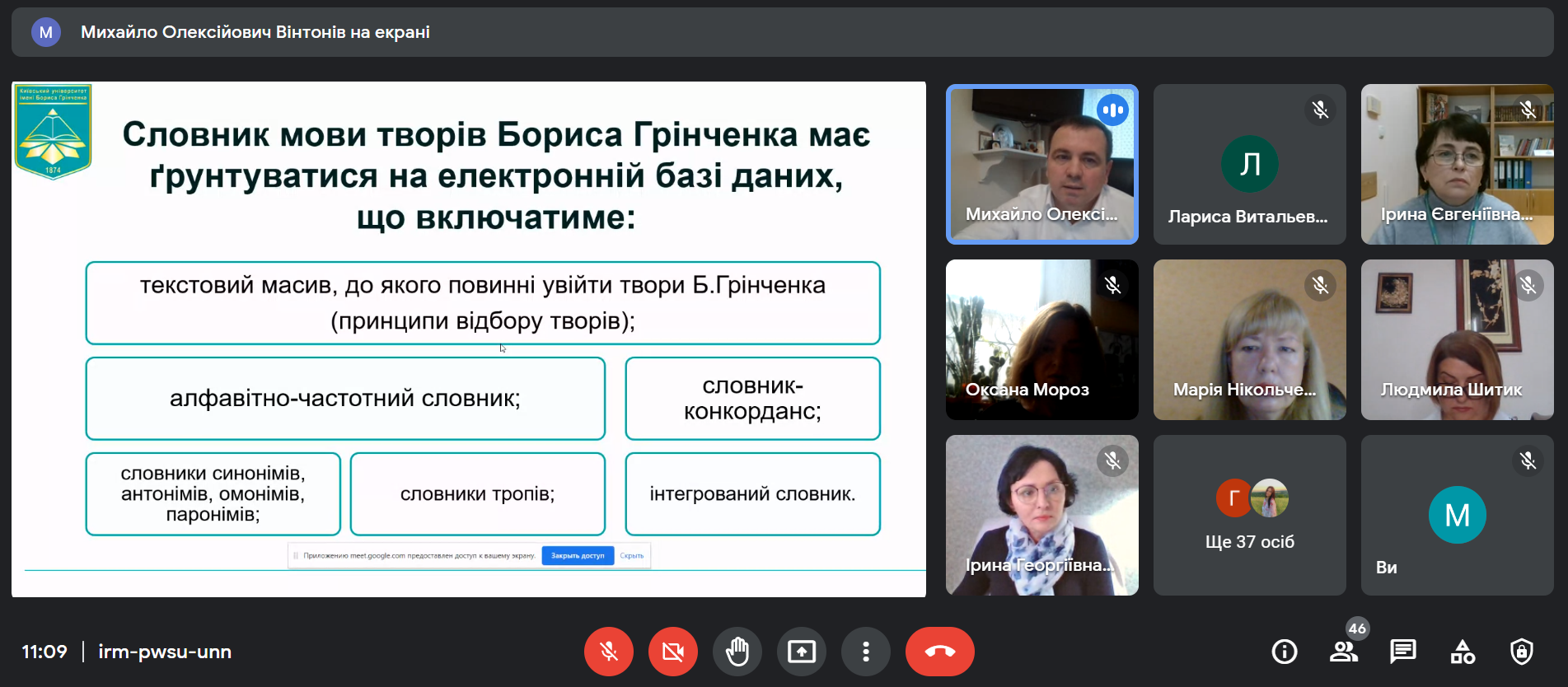 - регіональний онлайн-семінар «Словник мови творів Бориса Грінченка: стан і перспективи» (модератори – Руснак І.Є., директор Інституту філології, Вінтонів М.О., завідувач кафедри української мови);