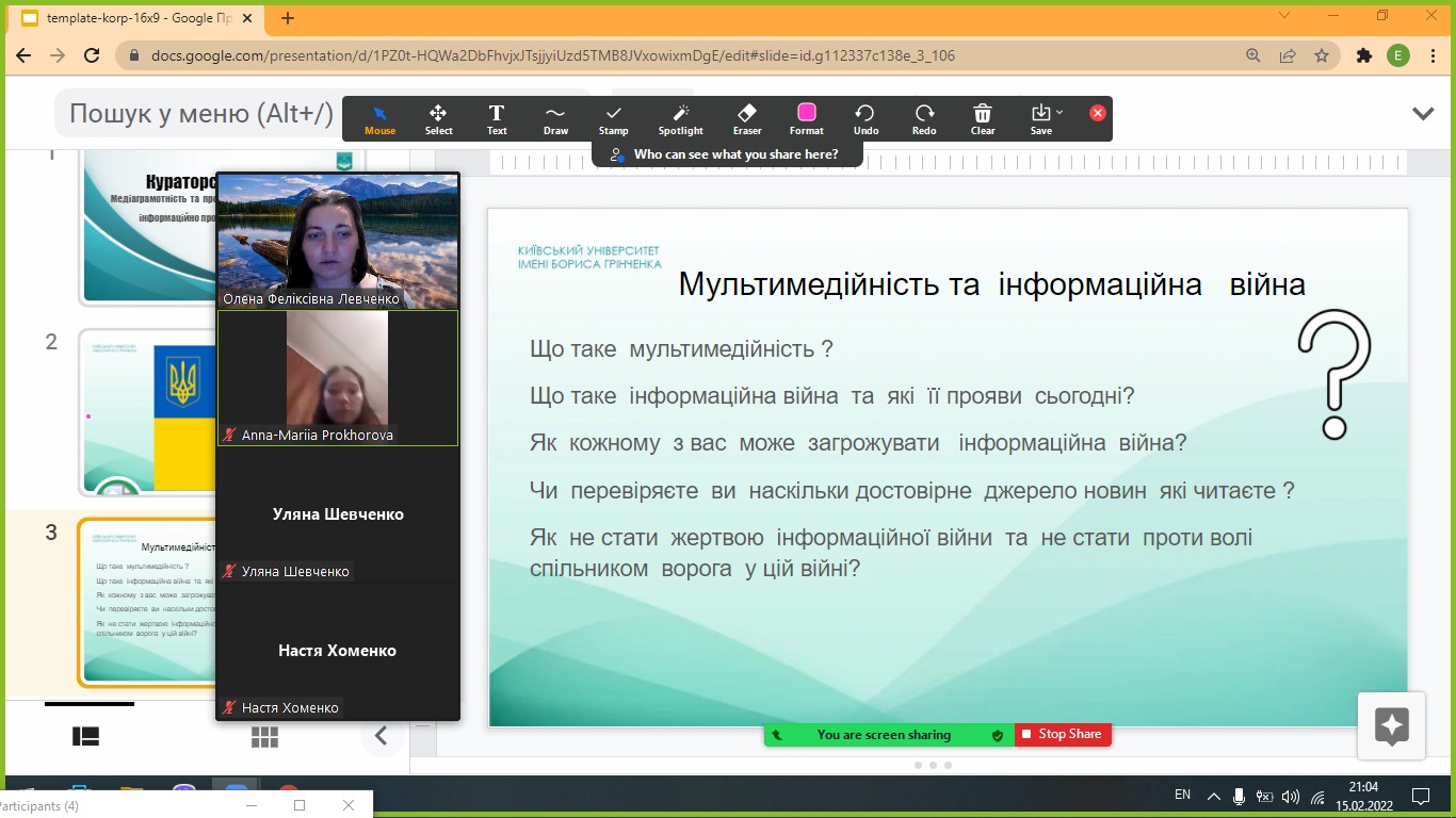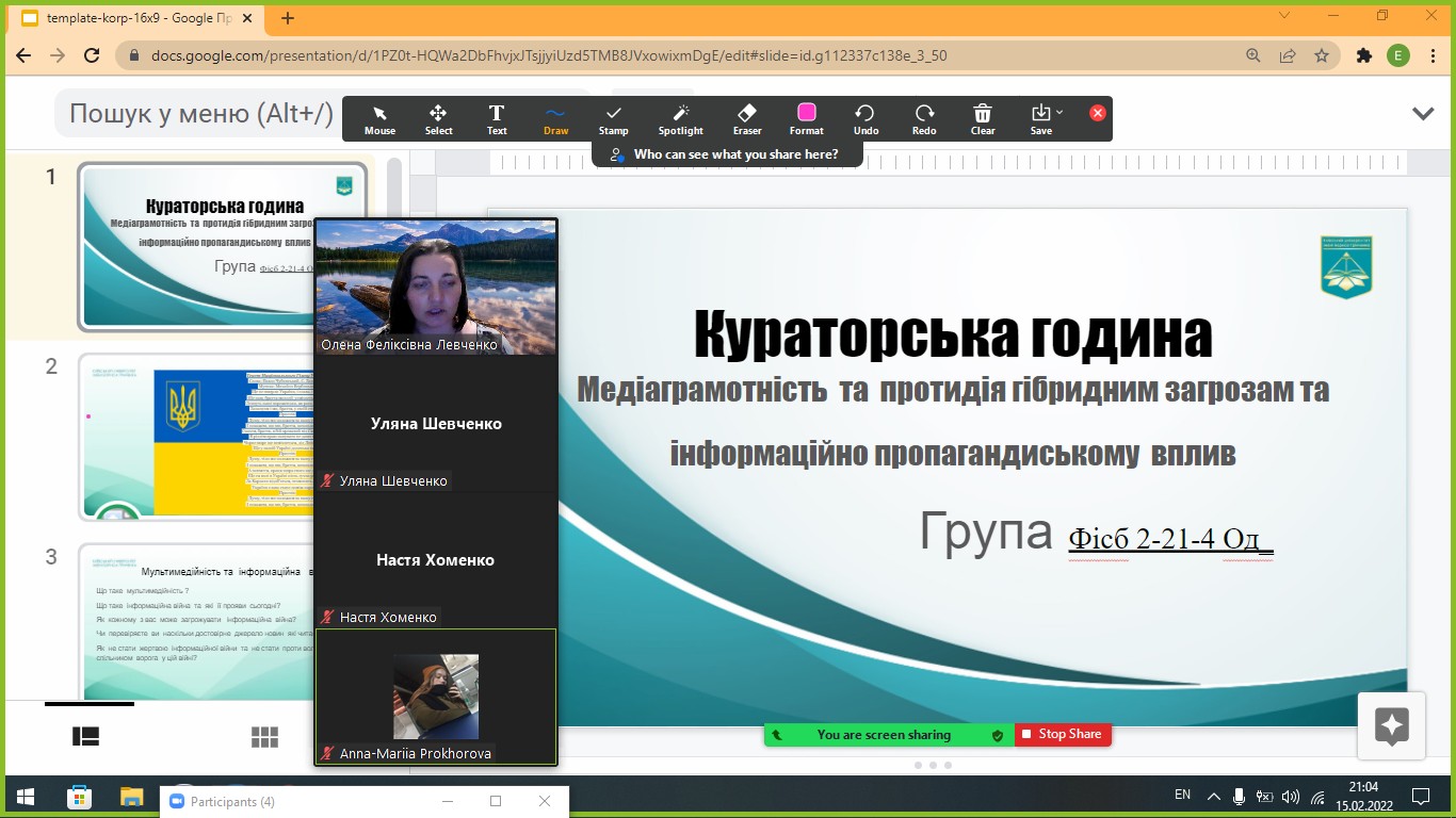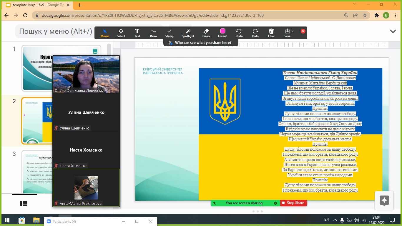 Із 16 до 18 лютого 2022 року студенти і викладачі Інституту філології долучилися до відзначення Дня єднання: провели серію кураторських годин "Єднання суспільства - крок до миру", "Медіаграмотність, протидія гібридним загрозам, інформаційно пропагандистському впливу", онлайн-флешмоб "Одна єдина соборна Україна".
