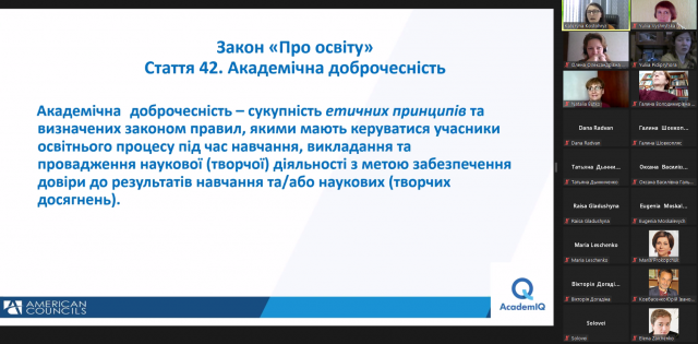 У межах співпраці кафедри світової літератури Інституту філології Київського університету імені Бориса Грінченка з Американськими Радами з міжнародної освіти розпочалася серія заходів з академічної доброчесності.