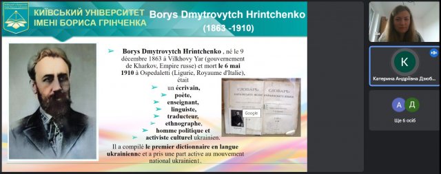 - практичне онлайн-заняття «Борис Грінченко очима іноземних студентів» (модератори – Т.М. Вінтонів, Т.О. Горохова, кафедра української мови);