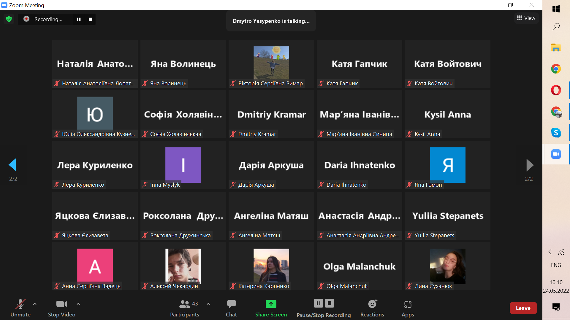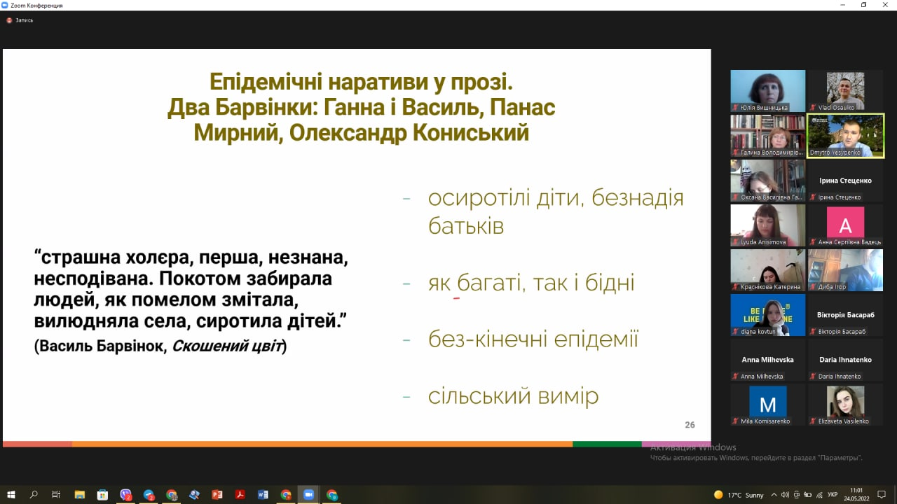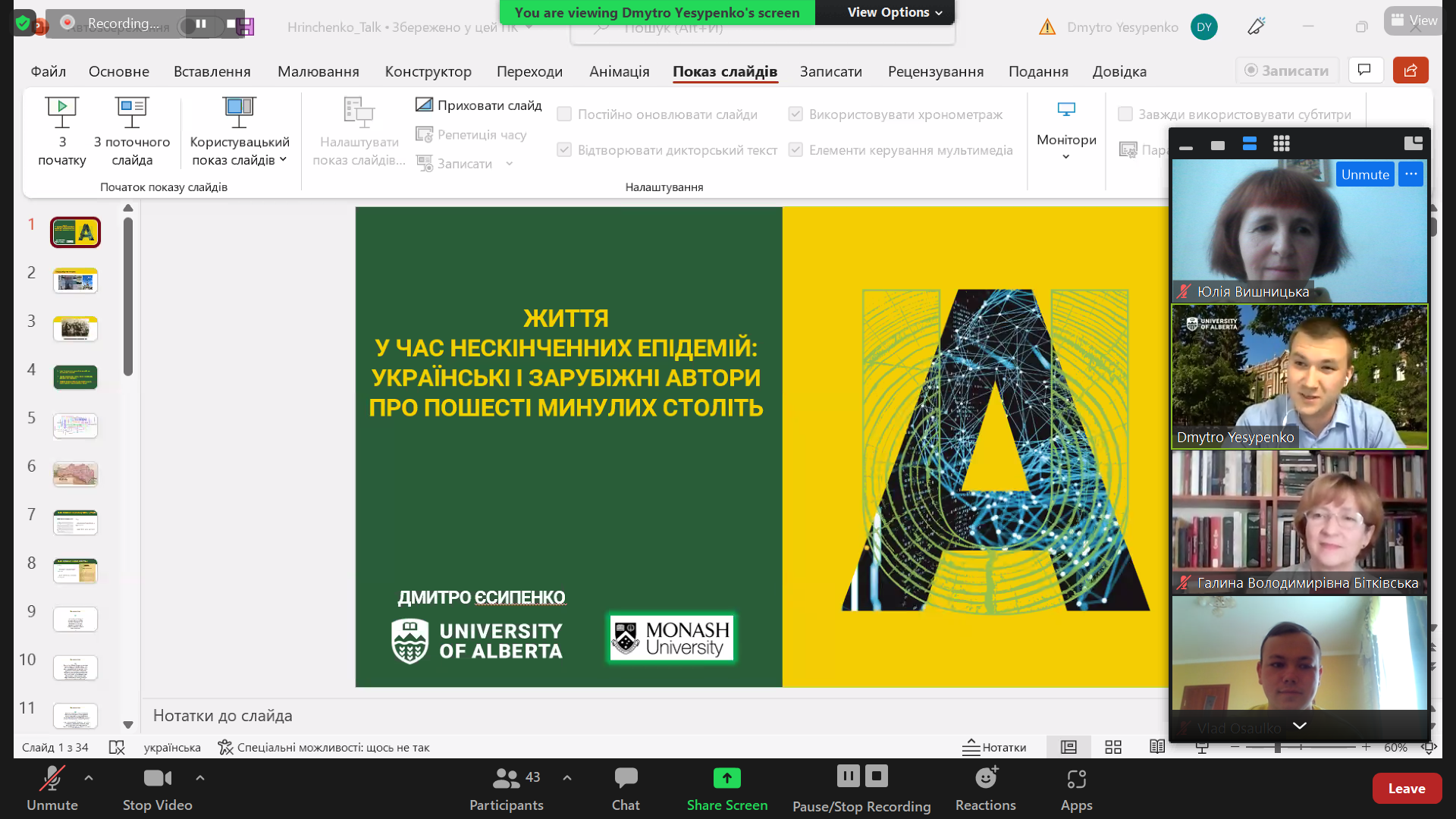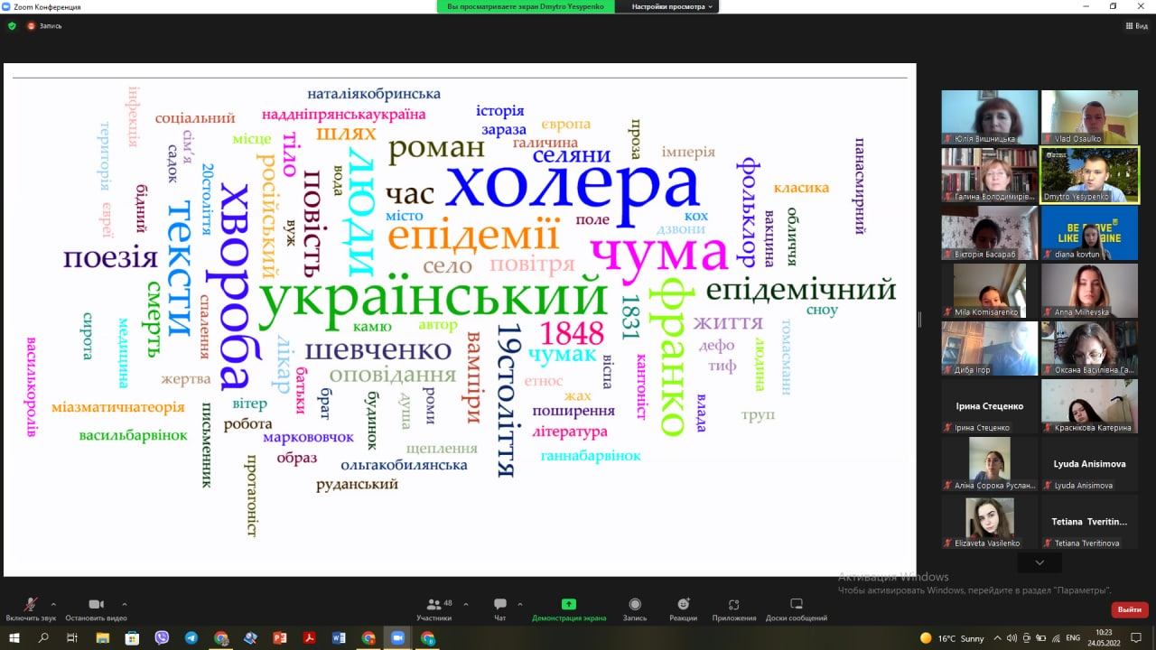 24 травня кафедра світової літератури в межах Фестивалю науки організувала й провела міжнародний захід - гостьову лекцію дослідника-асистента Центру Кулів, Університету Альберти (Едмонтон, Канада), асоційованого дослідника Університету ім. Монаша (Австралія) Дмитра Єсипенка. У заході взяли участь близько пів сотні учасників: студентів-грінченківців, викладачів Університету, випускників кафедри та науковців з інших українських інституцій. Понад двогодинна лекція засвідчила неабияке зацікавлення аудиторії темою "Життя в час нескінченних епідемій: українські та зарубіжні автори про пошесті минулих століть”, важливі текстові наративи, дослідницькі ідеї, лекторські знахідки.