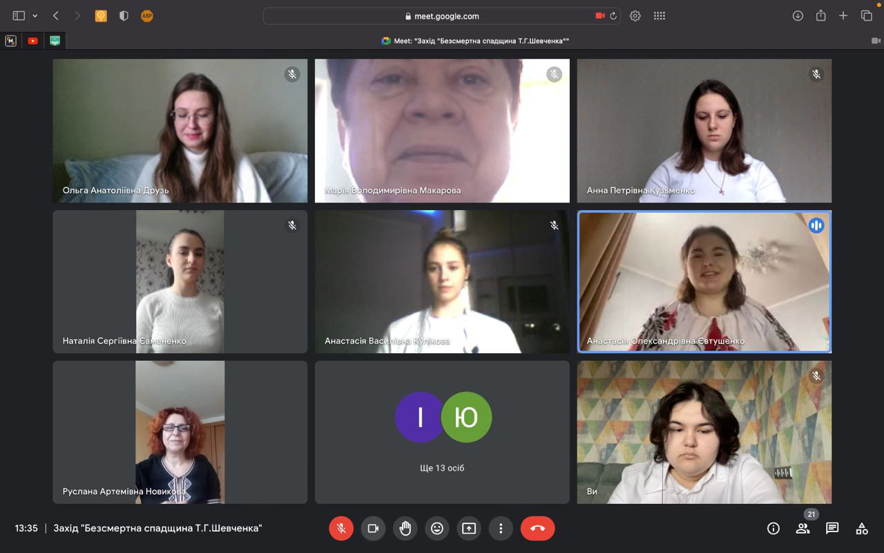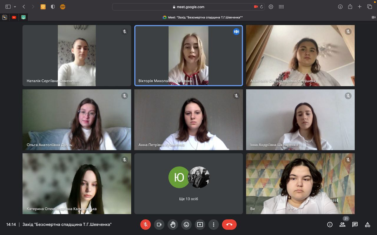 10 березня 2023 року студенти 1-го курсу освітньої програми «Ведучий телевізійних програм» Університету Грінченка під керівництвом куратора Р.А. Новикової провели захід «Безсмертна спадщина Тараса Шевченка». Першокурсники дізналися цікаві та маловідомі факти із життя геніального митця, подивилися презентацію його картин і насолодилися прекрасною Шевченковою поезією.
