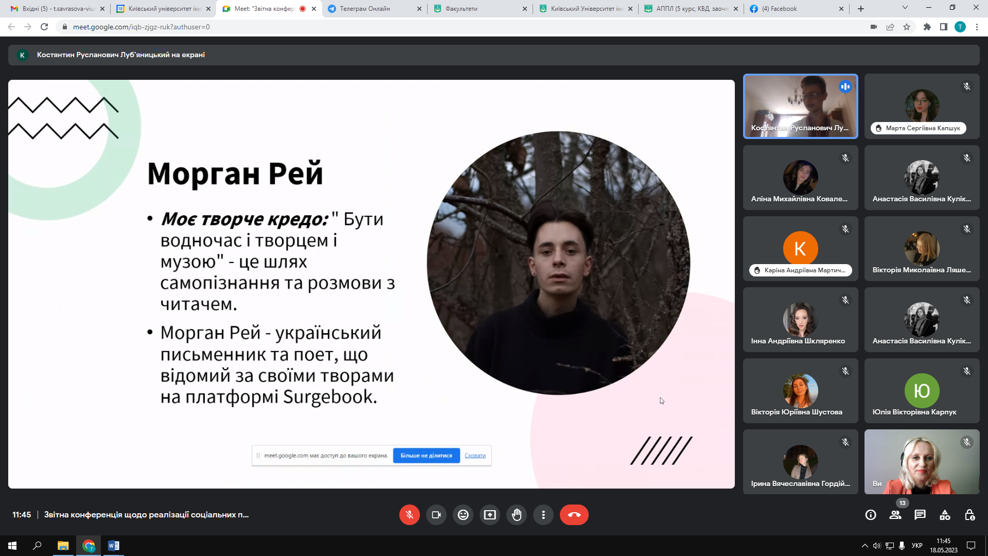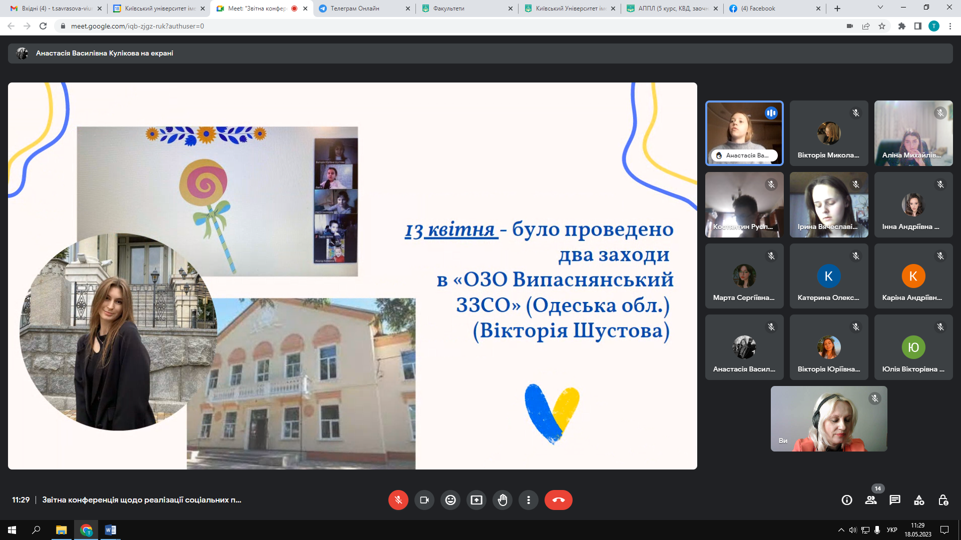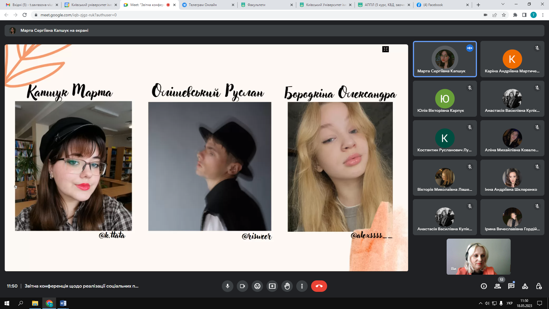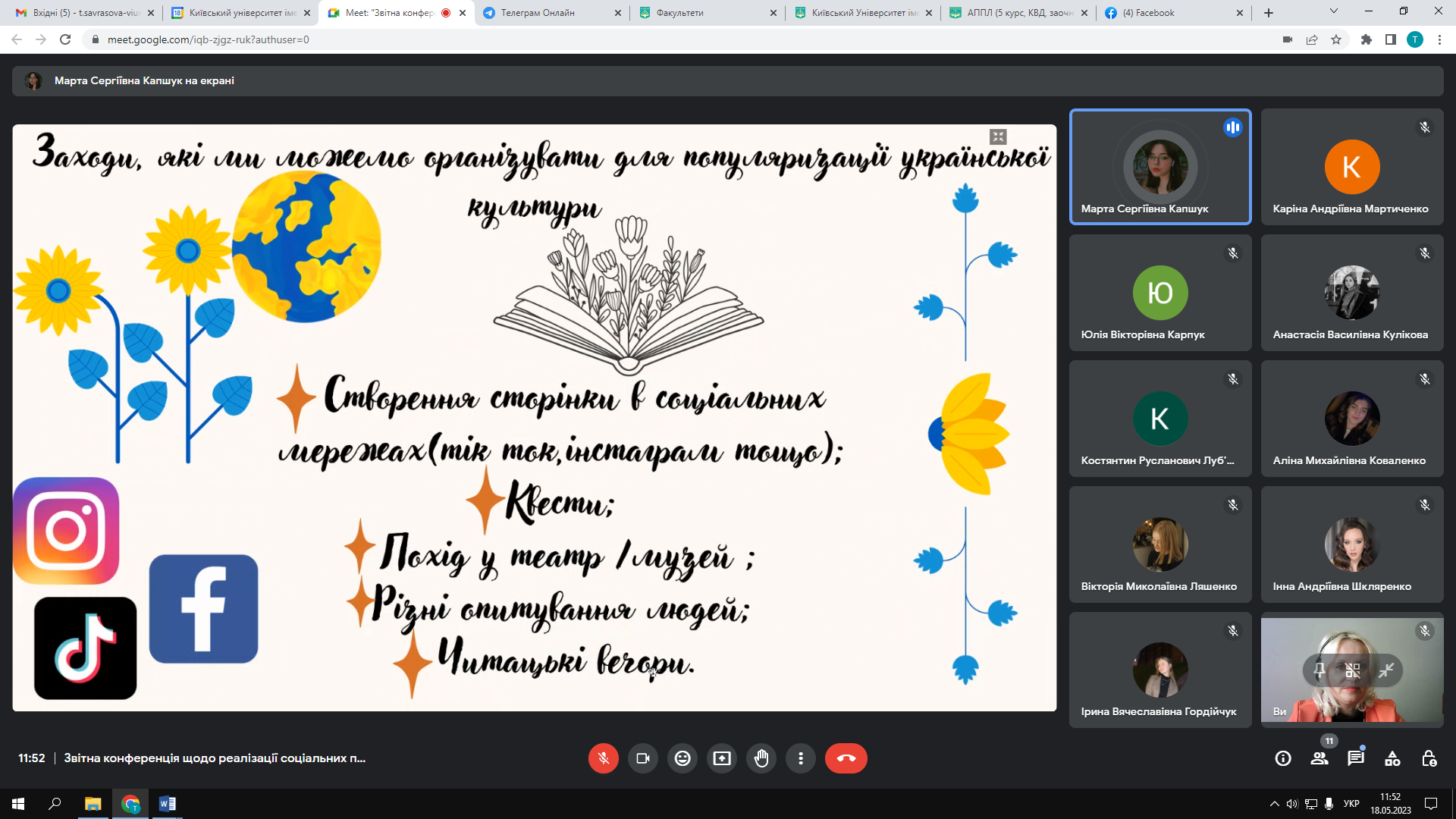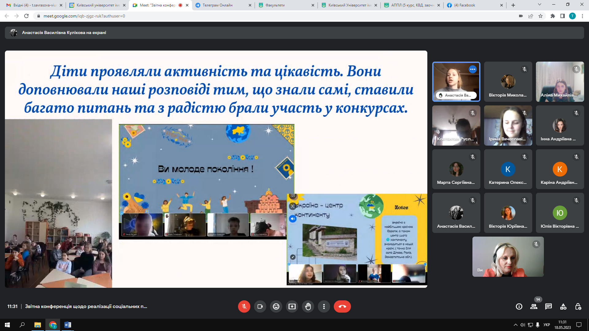 18 травня 2023 року студенти Факультету української філології культури і мистецтва Київського університету імені Бориса Грінченка провели звітну конференцію з питань втілення соціальних проєктів студентських груп у межах реалізації заходів програми «З Києвом і для Києва».
