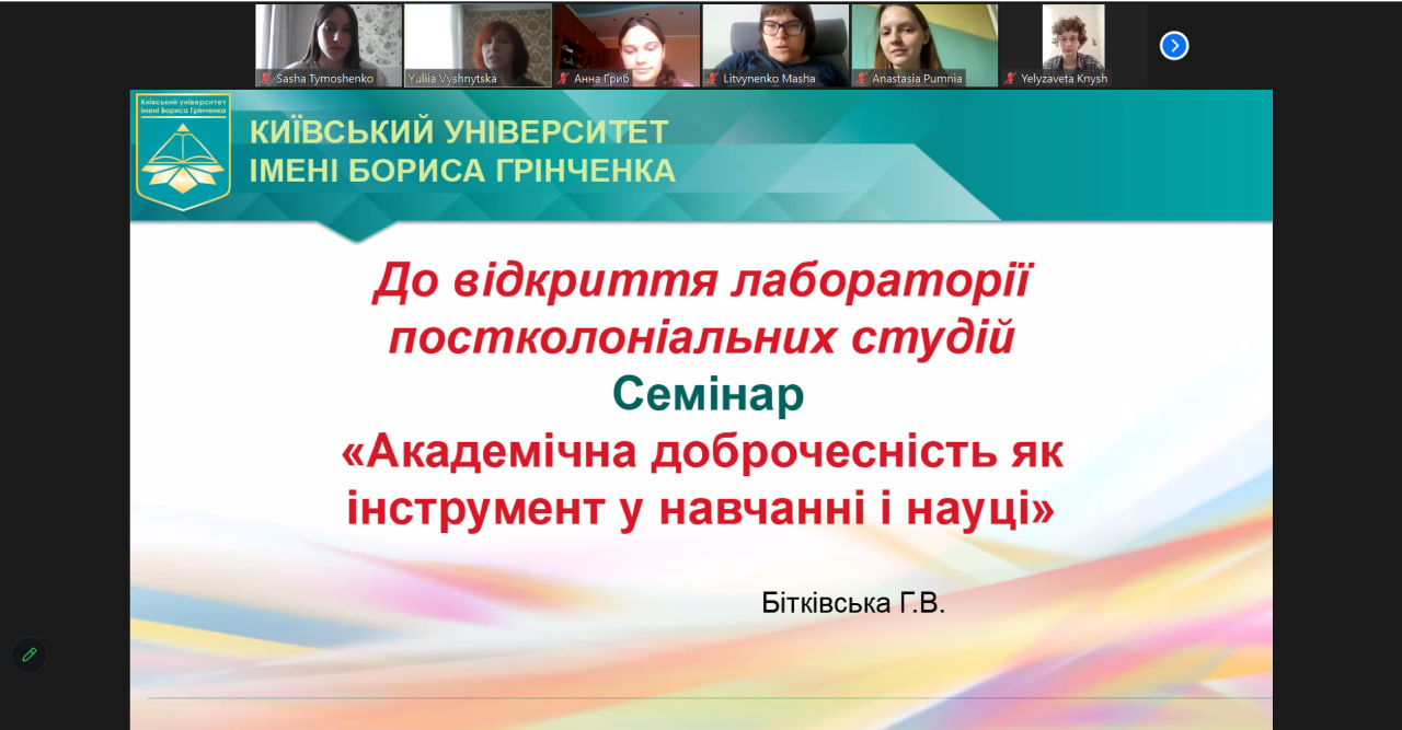 22 травня 2023 року в межах Фестивалю науки на Факультеті української філології, культури і мистецтва відбулося відкриття лабораторії постколоніальних студій. Модераторами заходу стали Галина Володимирівна Бітківська, доктор філологічних наук, завідувач кафедри світової літератури і Юлія Василівна Вишницька, доцент цієї кафедри.