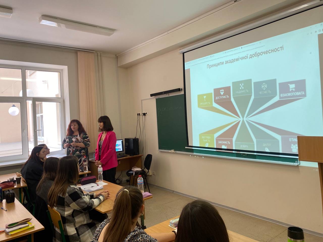 Під час заходу студенти І курсу дізналися про сутність і значення академічної доброчесності в освітньому просторі, ознайомилися з особливостями дотримання принципів академічної доброчесності для забезпечення якісної навчальної й науково-дослідницької діяльності.