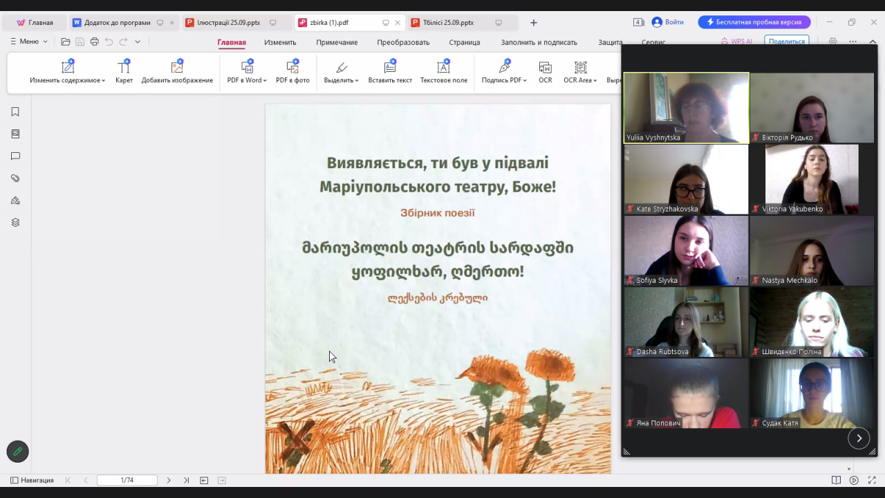 - провели презентацію книжки-білінгви українсько-грузинської мілітарної поезії «Виявляється, Ти був у підвалі Маріупольського театру, Боже!» (модератор – Юлія Вишницька, кафедра світової літератури);