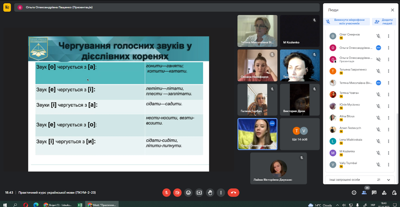 Працюємо за спеціально розробленою робочою програмою, слухачі відвідують щоп`ятниці заняття, навчаються активно, виконують практичні завдання, тести, залюбки спілкуються, поглиблюють свої знання з української мови. Викладачі кафедри української мови в День української писемності та мови розповіли про історію та значення цього свята, розкрили історію становлення писемності та українського правопису.