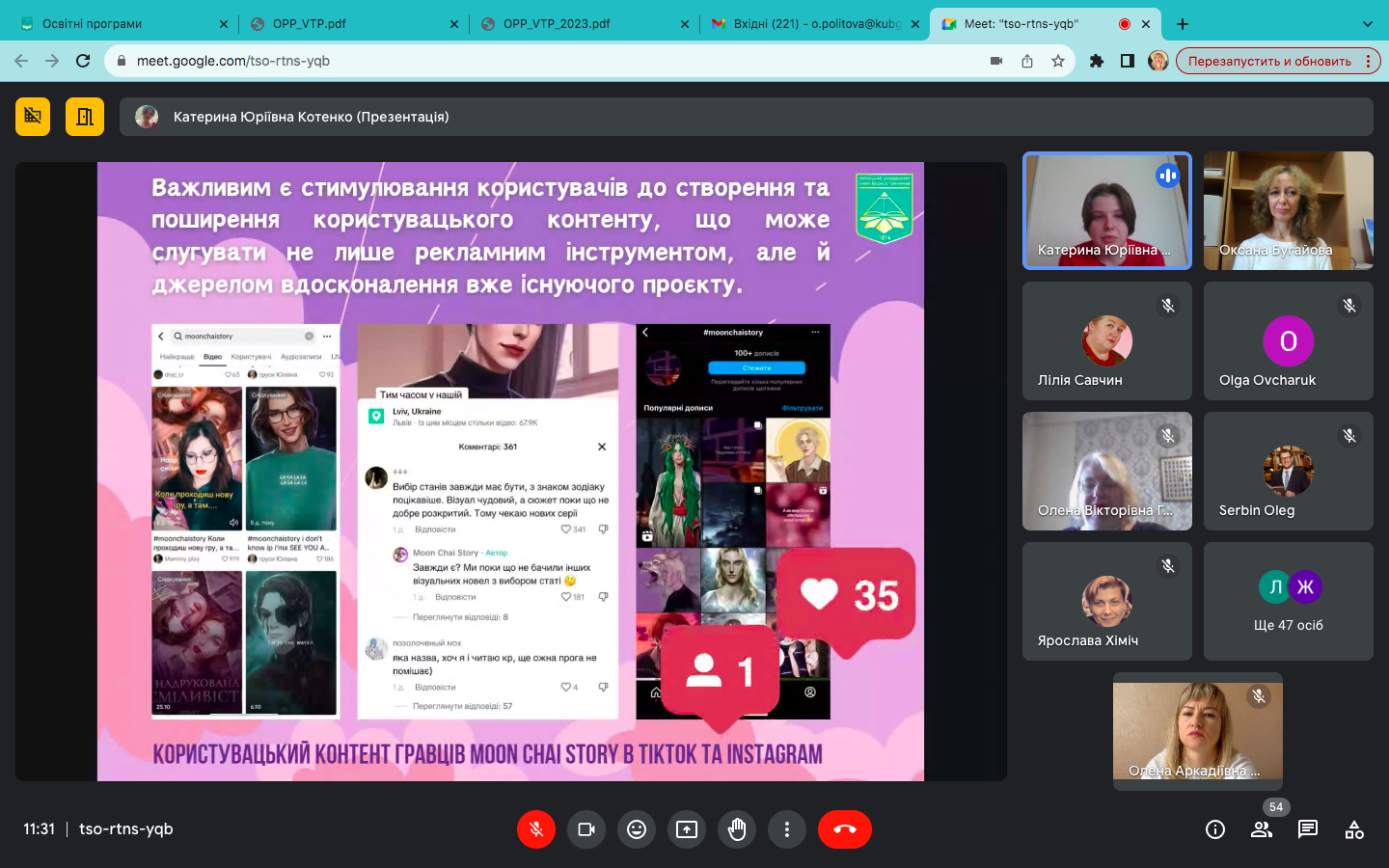 Важливо, що свої наукові здобутки представили і здобувачі освіти. Зокрема, Котенко К.Ю., студентка 3 курсу спеціальності «Інформаційна, бібліотечна та архівна справа» виступила з темою «Візуальні новели та промоція читання з-поміж молоді».