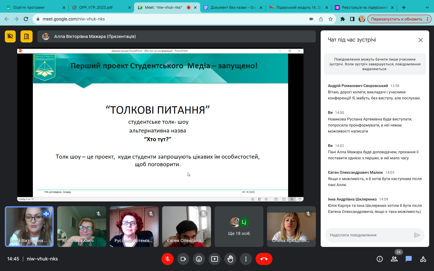 Про зацікавленість, розмаїття задумів щодо започаткування студентами (під керівництвом досвідчених практиків) власного ток-шоу йшлося у виступі Мажари А.В., старшого викладача кафедри інформаційних комунікацій, режисера документального кіно.