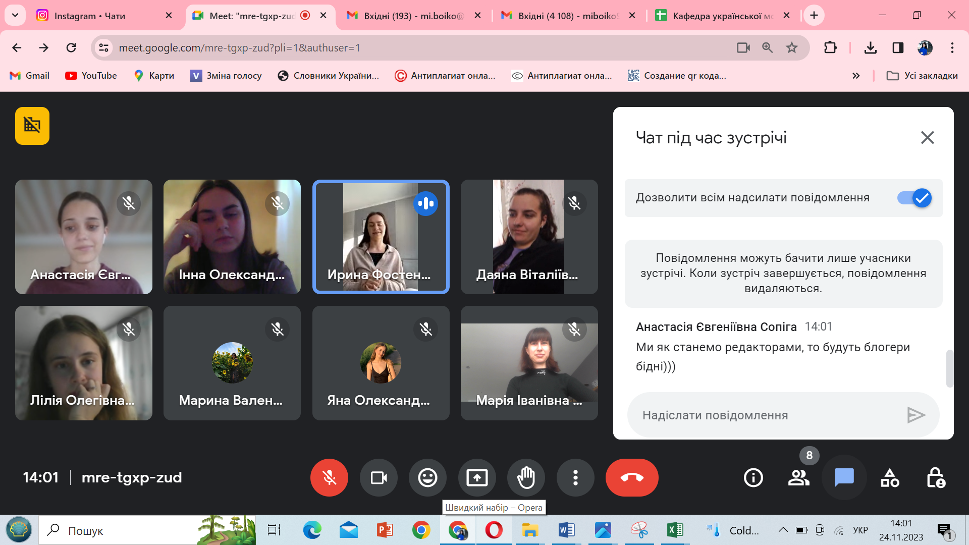 24 листопада 2023 року члени Наукового товариства студентів, аспірантів, докторантів і молодих вчених Факультету української філології, культури і мистецтва Київського університету імені Бориса Грінченка відвідали онлайнову інтерактивну лекцію Ірини Фостенко «Як говорити про науку в цифровому світі» (модератор - Бойко М.І., заступник голови Наукового товариства студентів, аспірантів, докторантів і молодих вчених Факультету української філології, культури і мистецтва).