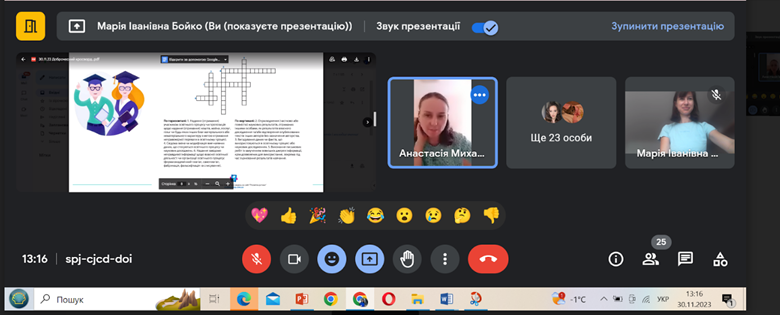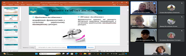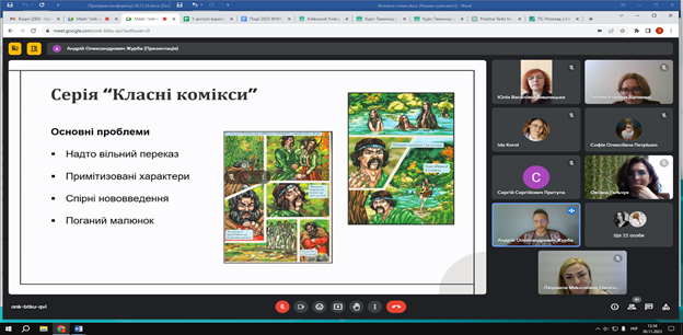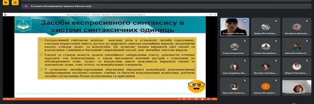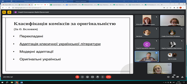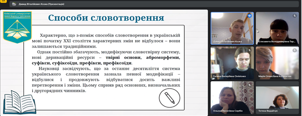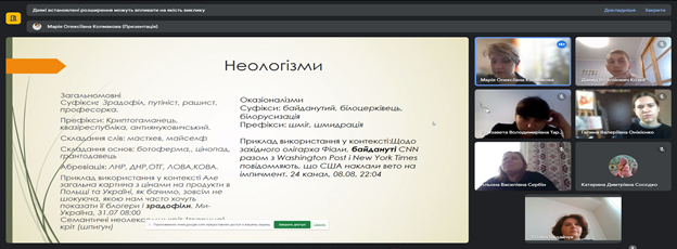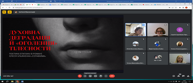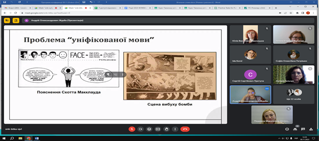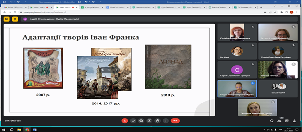 30 листопада 2023 року на Факультеті української філології, культури і мистецтва відбулася VІІІ Всеукраїнська науково-практична онлайн-конференція студентів, аспірантів, докторантів і молодих учених «Актуальні проблеми літературознавства і мовознавства». Відкрила щорічну конференцію Людмила Овсієнко, заступник декана з наукової роботи, доктор педагогічних наук, професор кафедри української мови. Людмила Миколаївна привітала гостей, повідомила про основні напрями, що будуть обговорюватися, подякувала організаторам та учасникам заходу за інтерес до науки й допомогу в організації події.