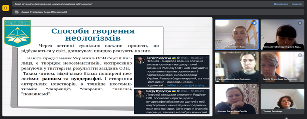 Особливу подяку висловлюємо Давидові Козці, здобувачеві другого освітнього рівня магістранту освітньої програми «Українська мова та література» за активну участь у дискусії, глибокий аналіз доповідей колег, непрості професійні запитання.